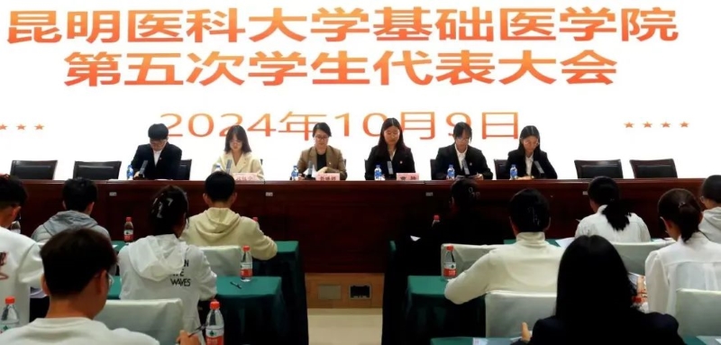 2024年10月9日,基础医学院第五次学生代表大会在呈贡校区学术交流中心第二报告厅召开。学院党委副书记管琳娜,学院团委书记曹琦,校学生会代表段钰宁及学院58名学生代表参加会议。