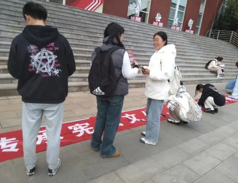 普法长廊活动于12月5日在学生会堂前举行。活动通过发放宪法宣传折页、填写法律知识问卷、普法展板展示、横幅签字纪念等形式增进同学们对宪法的了解,让同学们学到了更多相关的法律条例,鼓励大家做尊法、学法、知法、守法、用法的青年人!