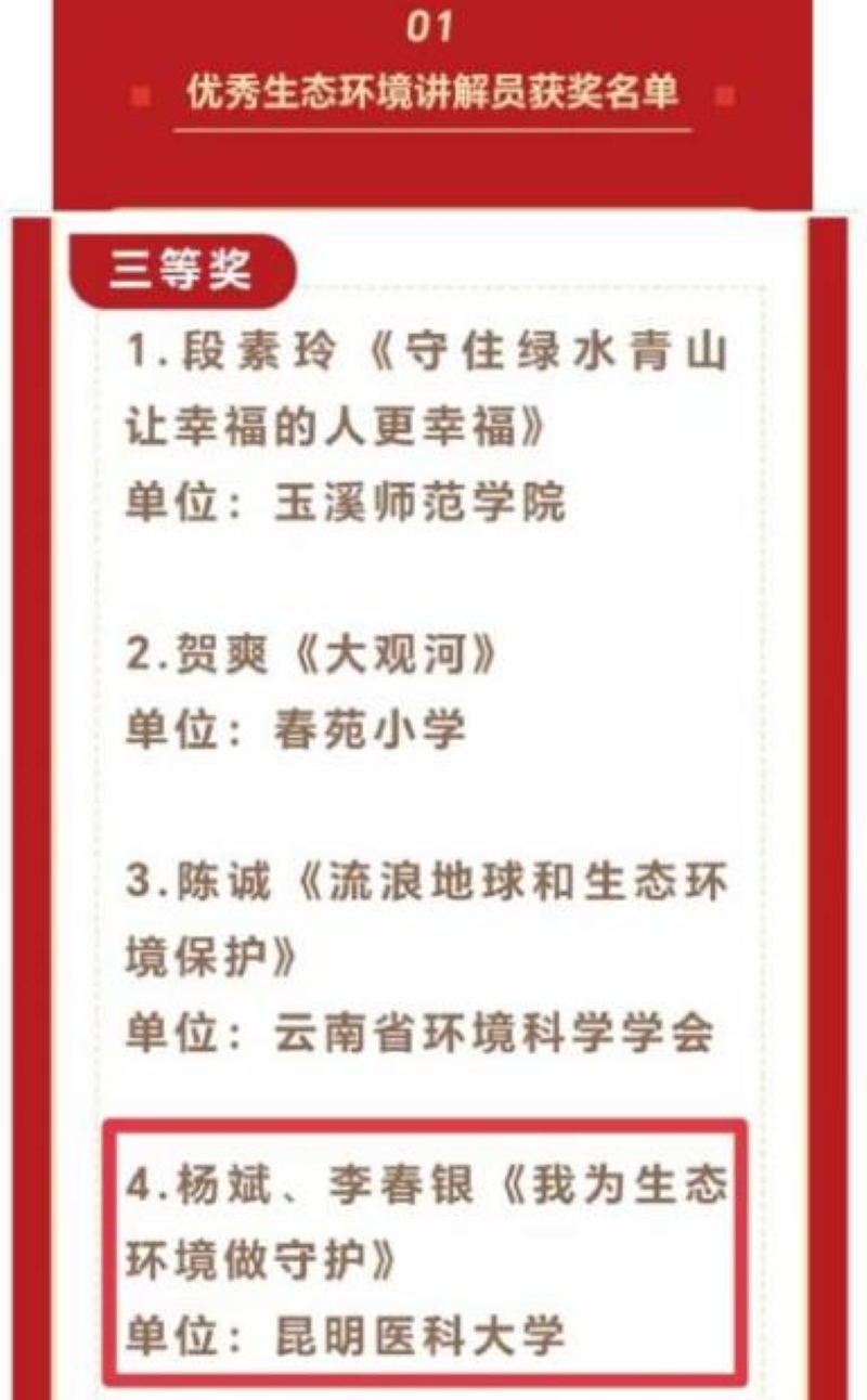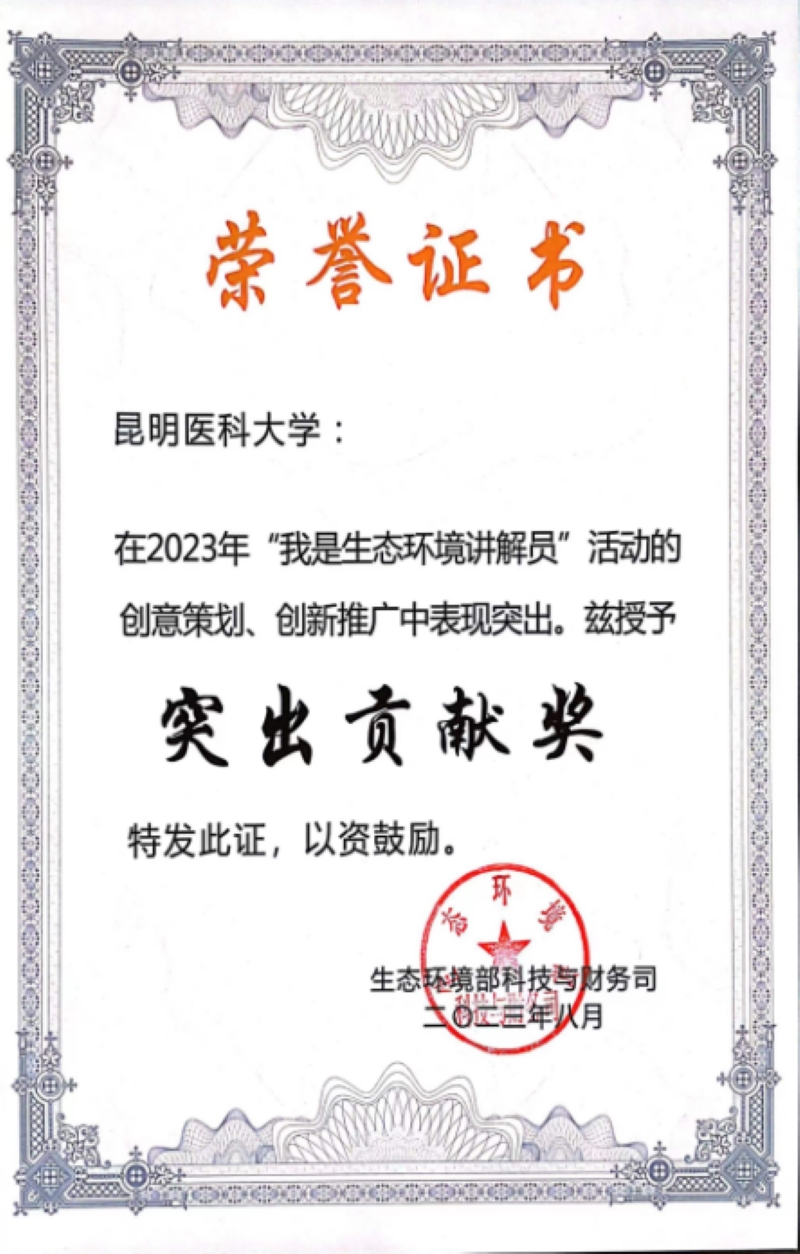 协会积极响应省社科联云南省新时代文明实践社科普及志愿服务行动,组织开展“我是生态环境讲解员大赛”和“我是生态环境讲解员优秀剧本大赛”,全校收到了30个我是生态讲解员视频作品、54个剧本作品。推荐优秀讲解员和优秀剧本至省赛、国赛,伟德国际1949官网获“全国突出贡献奖”“全省优秀组织奖”,获得了省赛一二三等奖的多个奖项,在全校发掘并培养了大批优秀科普人才。2023年8月15日是首个“全国生态日”,指导教师吴林雄参加了由生态环境部主办,中环境科学学会、广西壮族自治区生态环境厅承办的全国生态环境科普工作交流会、“我是生态环境讲解员”全国总决赛及颁奖典礼。