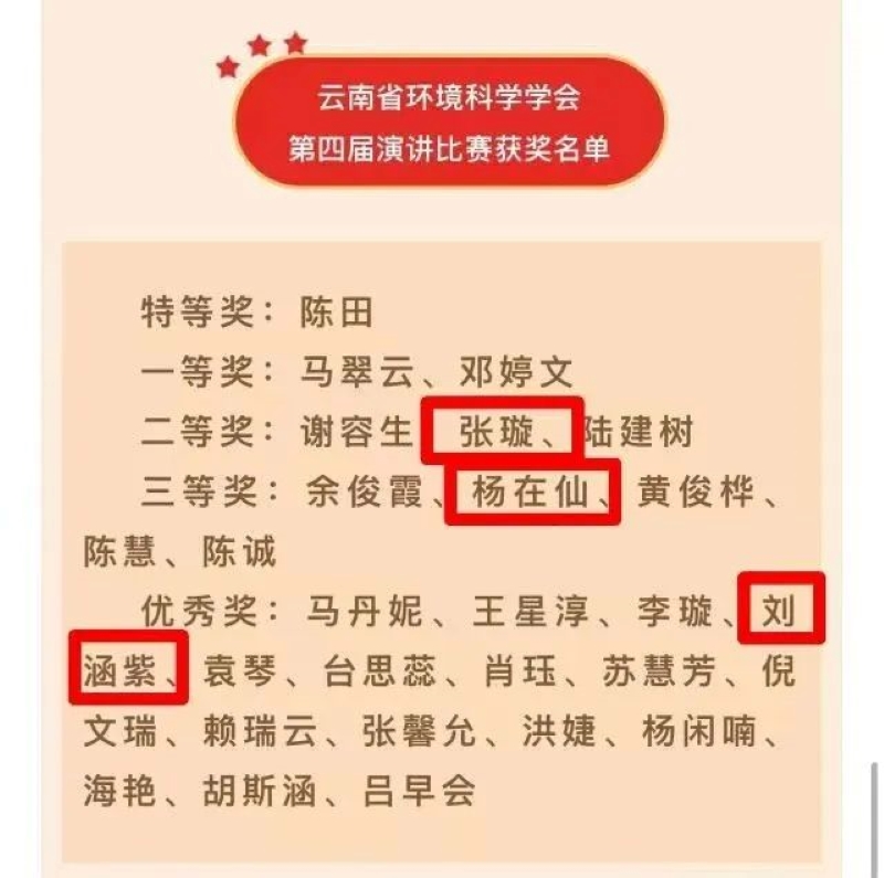 为进一步激发会员主动关注时事政治、关心身边事,协会组织会员参加云南省环境科学学会将举办第四届“云南省环境科学学会演讲比赛”,提高会员的科普宣讲能力,培养选拔科普人才。并在此次比赛中荣获二等奖、三等奖、优秀奖各1名。