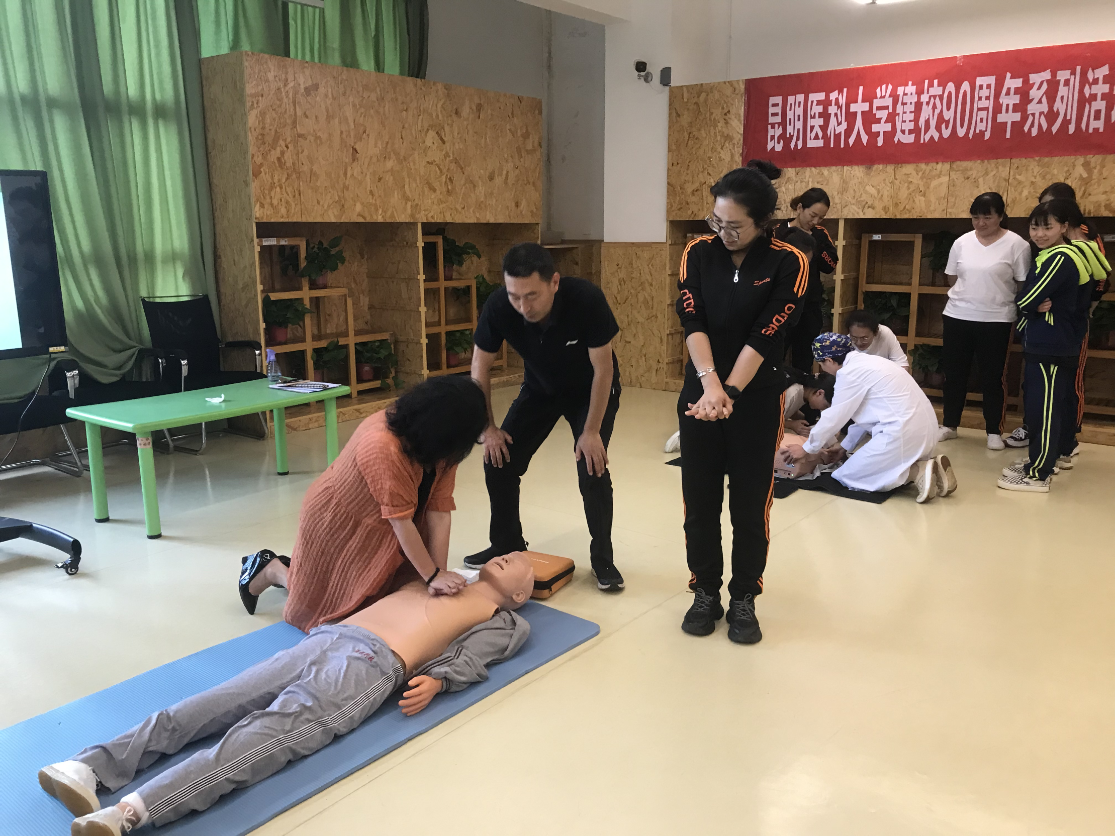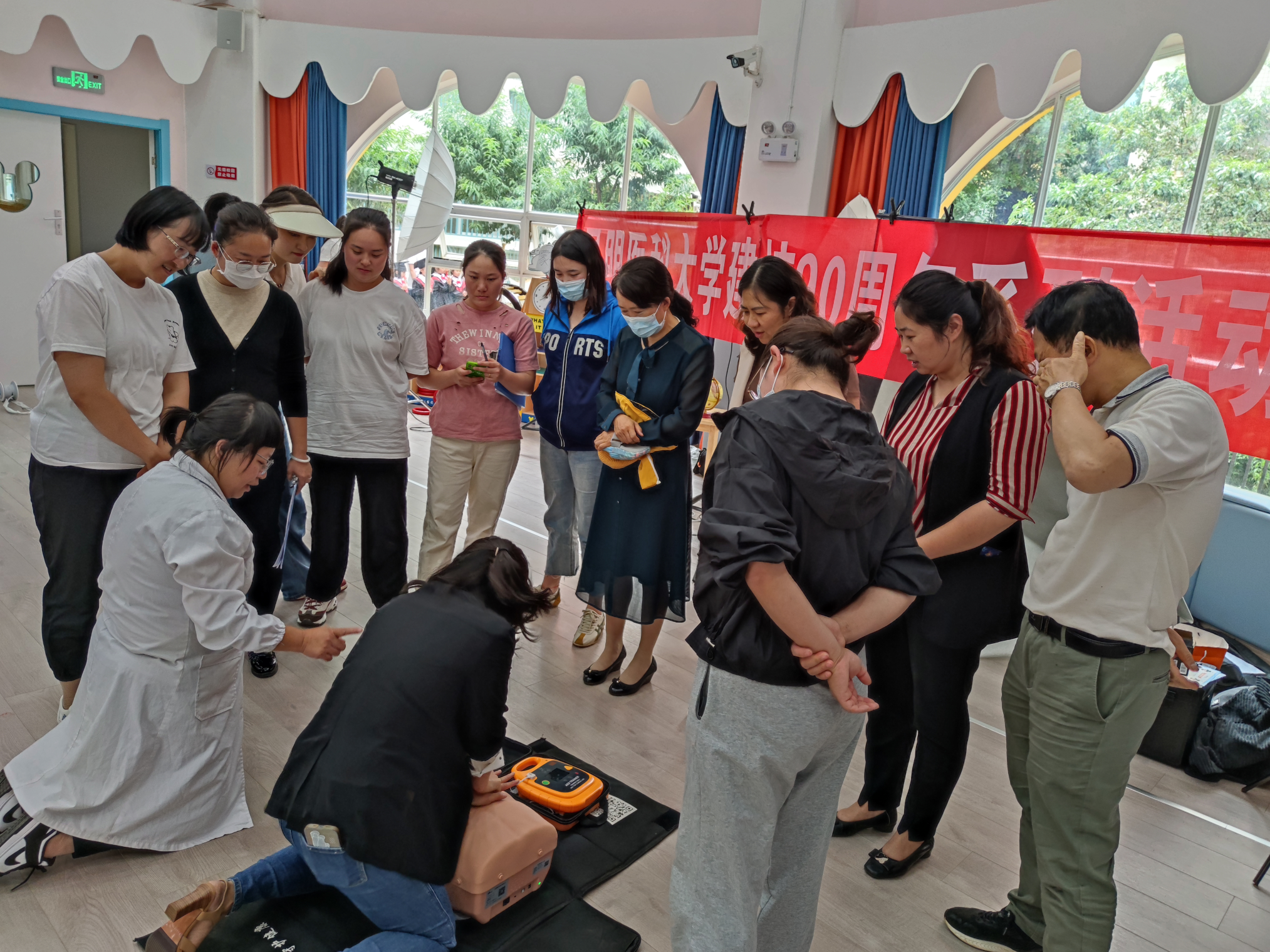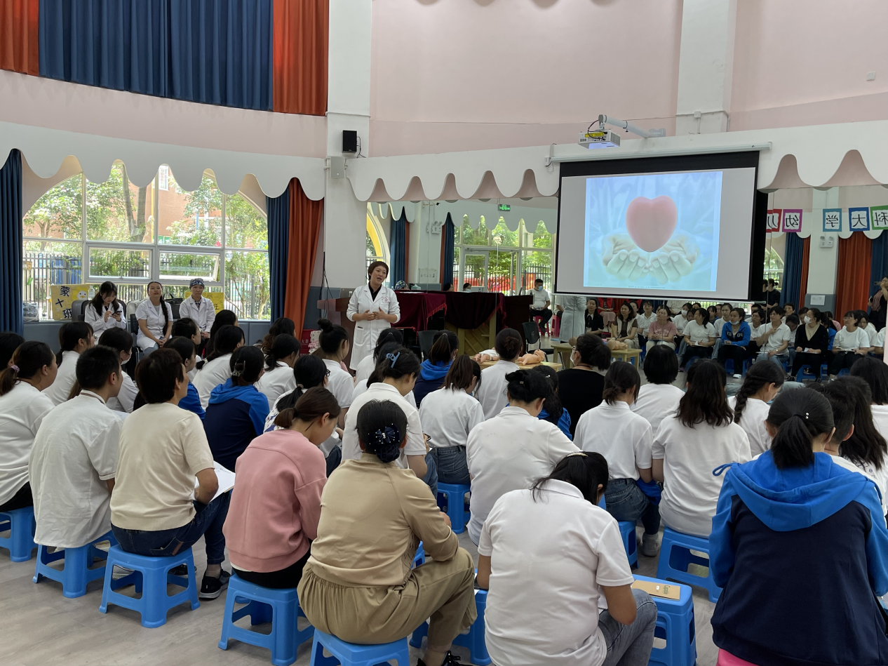 值此学校建校九十周年之际,为体现学校办学特色和社会服务理念,响应学校的号召,为母校九十周年华诞献礼,临床技能中心筹划了“建校90周年”系列活动,6月主题为“人人学急救,急救为人人”科普培训活动,6月26日、27日在后勤发展中心大力支持下,由临床技能中心党支部牵头、党外知识分子参与,到伟德国际1949官网幼儿园天润康园、吾悦花园两个园区为幼儿园教职工开展了急救知识培训活动,旨在提高幼儿园教师急救意识和互救能力。
