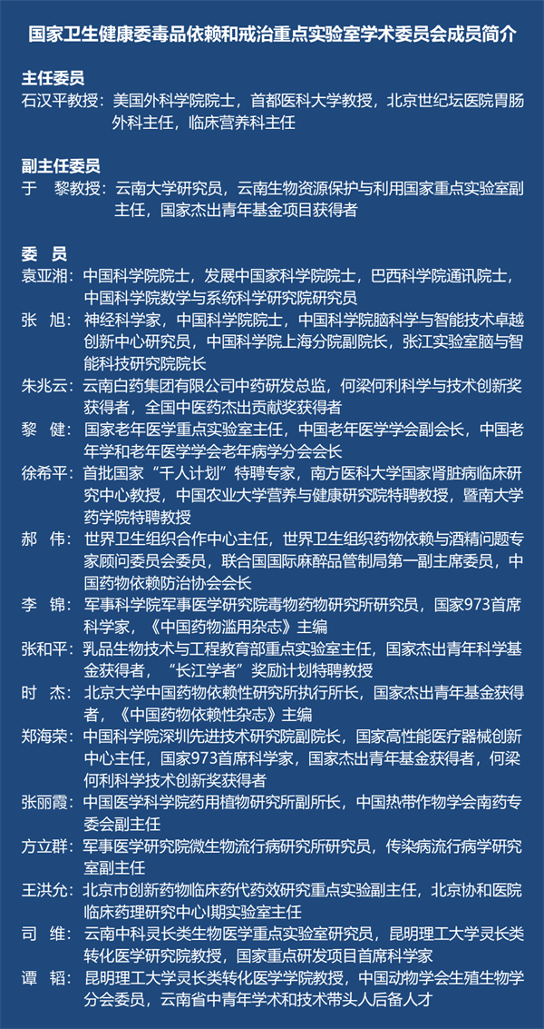 国家卫健委毒品依赖和戒治重点实验室第一届学术委员会成员简介