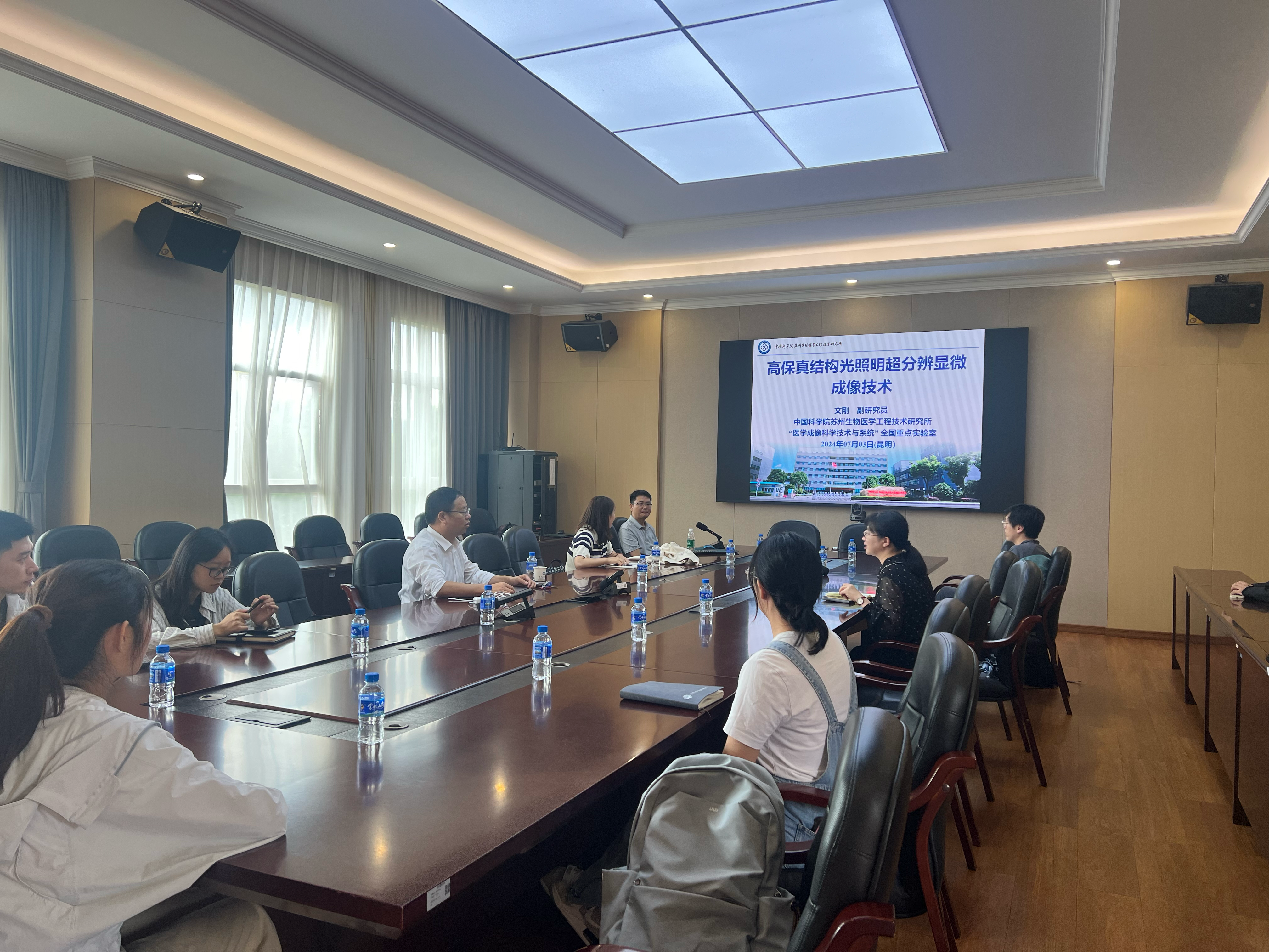 2024年7月2日上午,应伟德国际1949官网生物医学工程研究院陈策实院长邀请,中国科学院苏州生物医学工程研究所文刚副研究员到伟德国际1949官网生物医学工程研究院开展学术交流,生物医学工程研究院院长陈策实、副院长晏姗和研究院师生共20余人参加了此次活动。