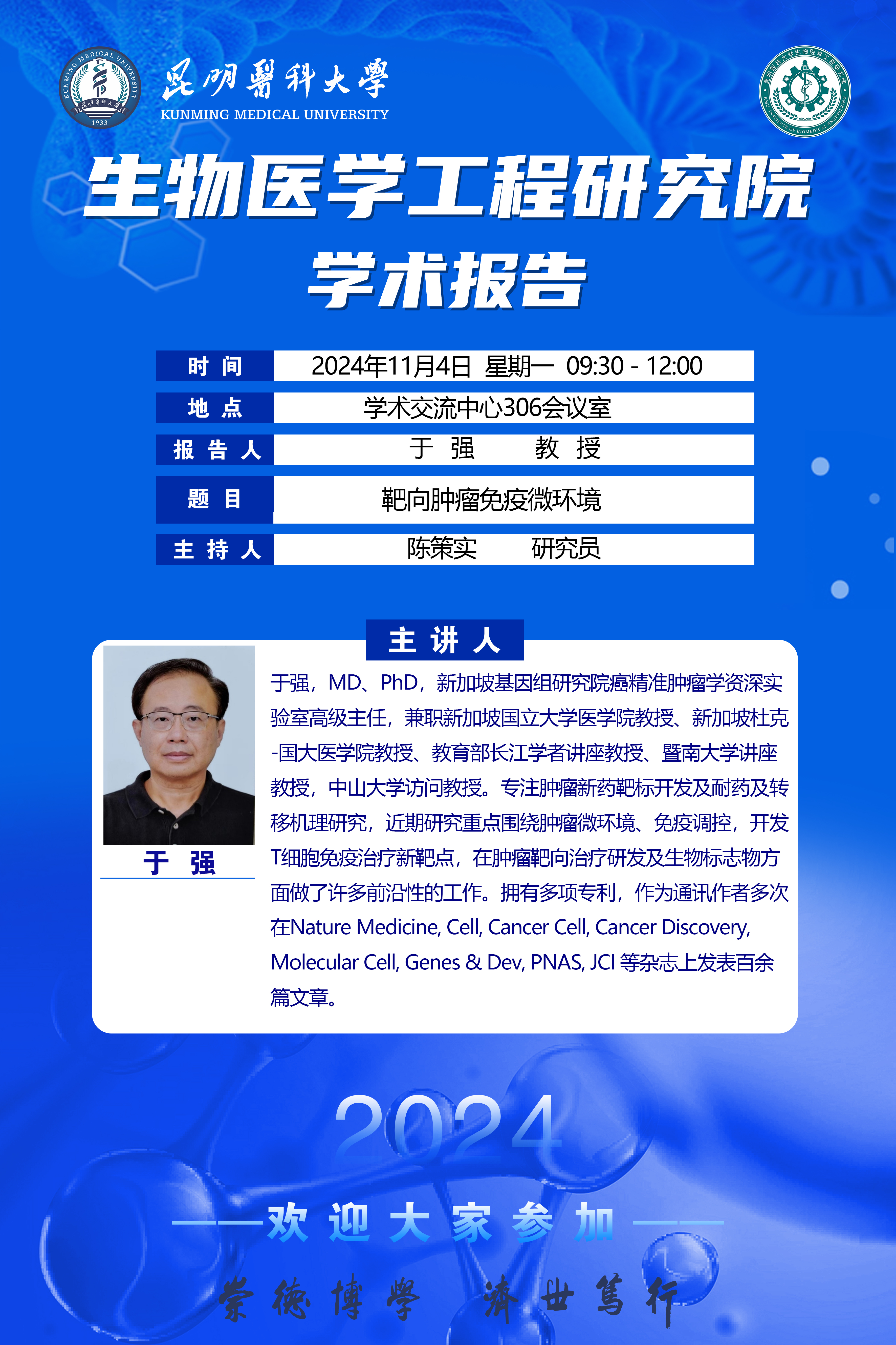 学术报告:靶向肿瘤免疫微环境(2024年11月4日 09:00 - 12:00)