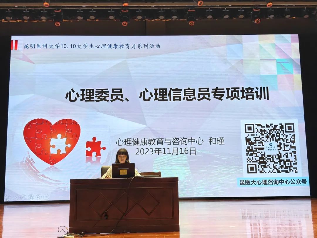 此次培训由心理健康教育与咨询中心和瑾老师主讲,和老师从心理委员、宿舍心理信息员的工作职责和原则,工作基础常识以及心理危机预防干预三方面进行了讲解。内容涉及了班级心理委员和宿舍心理信息员的五大工作职责、三个工作原则,心理健康的等级,常见心理障碍识别,心理咨询误区和心理危机前的警示讯号等等。指出班级心理委员和宿舍心理信息员要认清工作职责,坚守工作原则,时刻关注身边人的心理,不断增强沟通能力,提高对大学生常见心理问题的敏感度,成为班级同学心理健康的守护者和引导者。