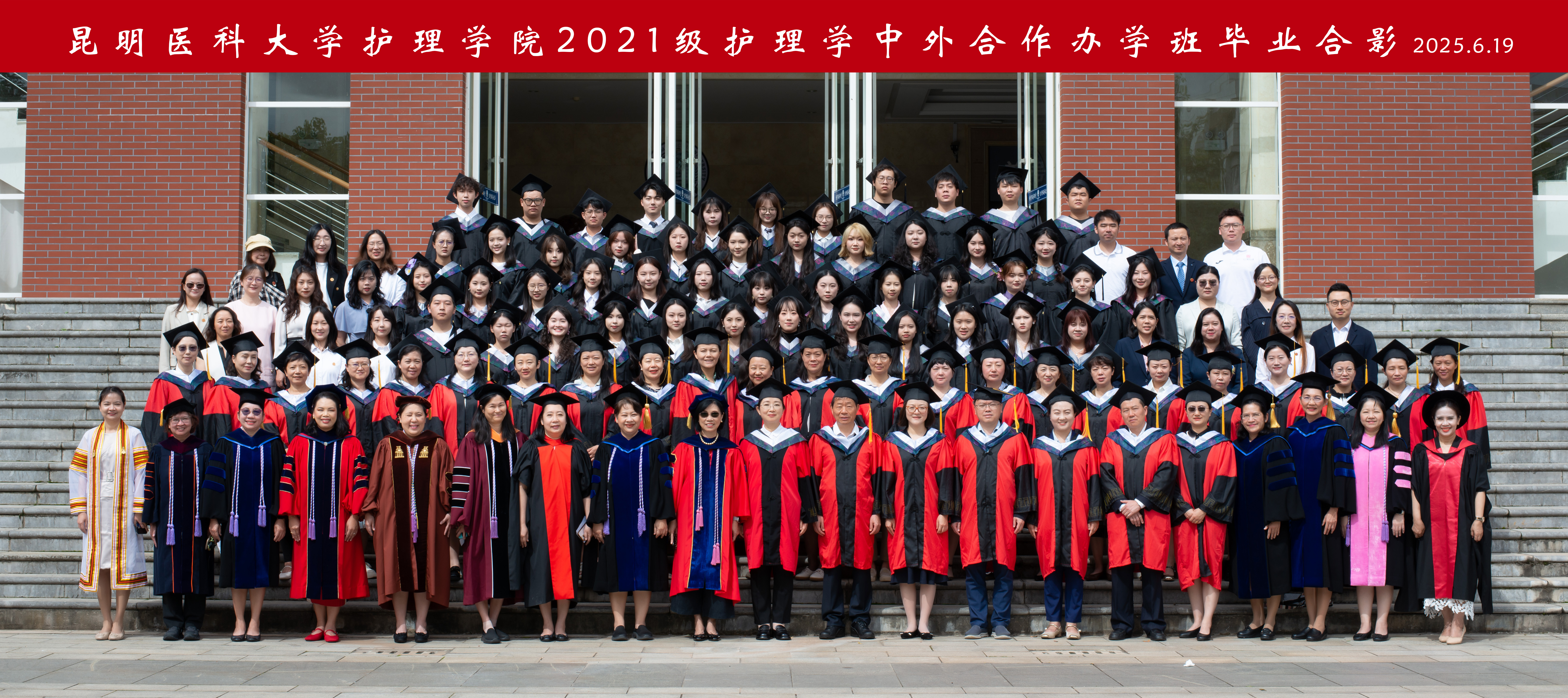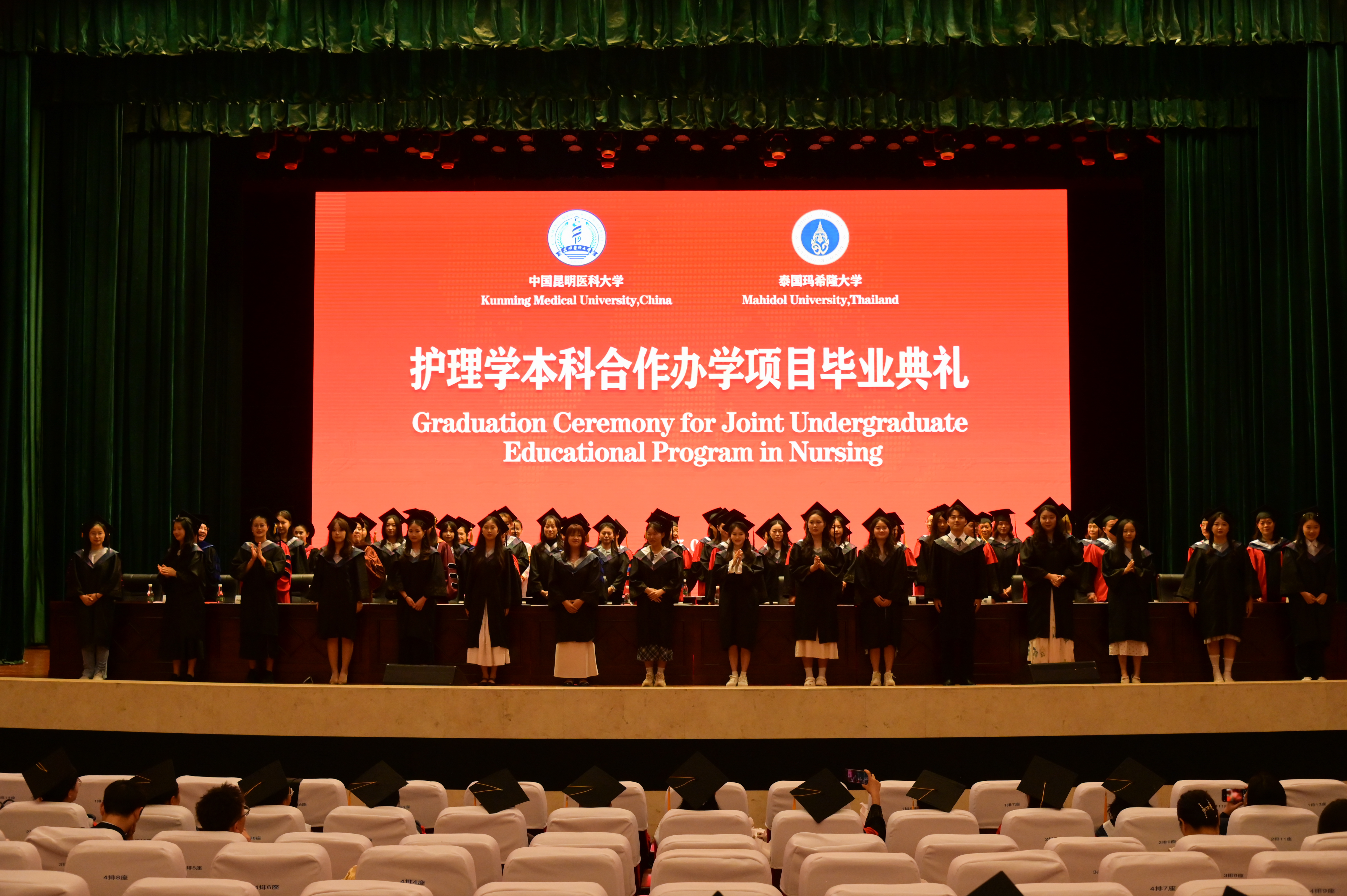 2025年6月19日,伟德国际1949官网护理学院2025届中外合作办学项目毕业典礼在呈贡校区学生会堂举行。伟德国际1949官网党委常委、副校长奚春睿、泰国玛希隆大学拉玛提博迪护理学院院长Poolsuk Janepanish Visudtibhan、学生处、对外合作交流处、教务处等职能部门、护理学院党政领导及全体教师、泰方15名教师代表参加毕业典礼。护理学院副院长陶慧主持典礼。
