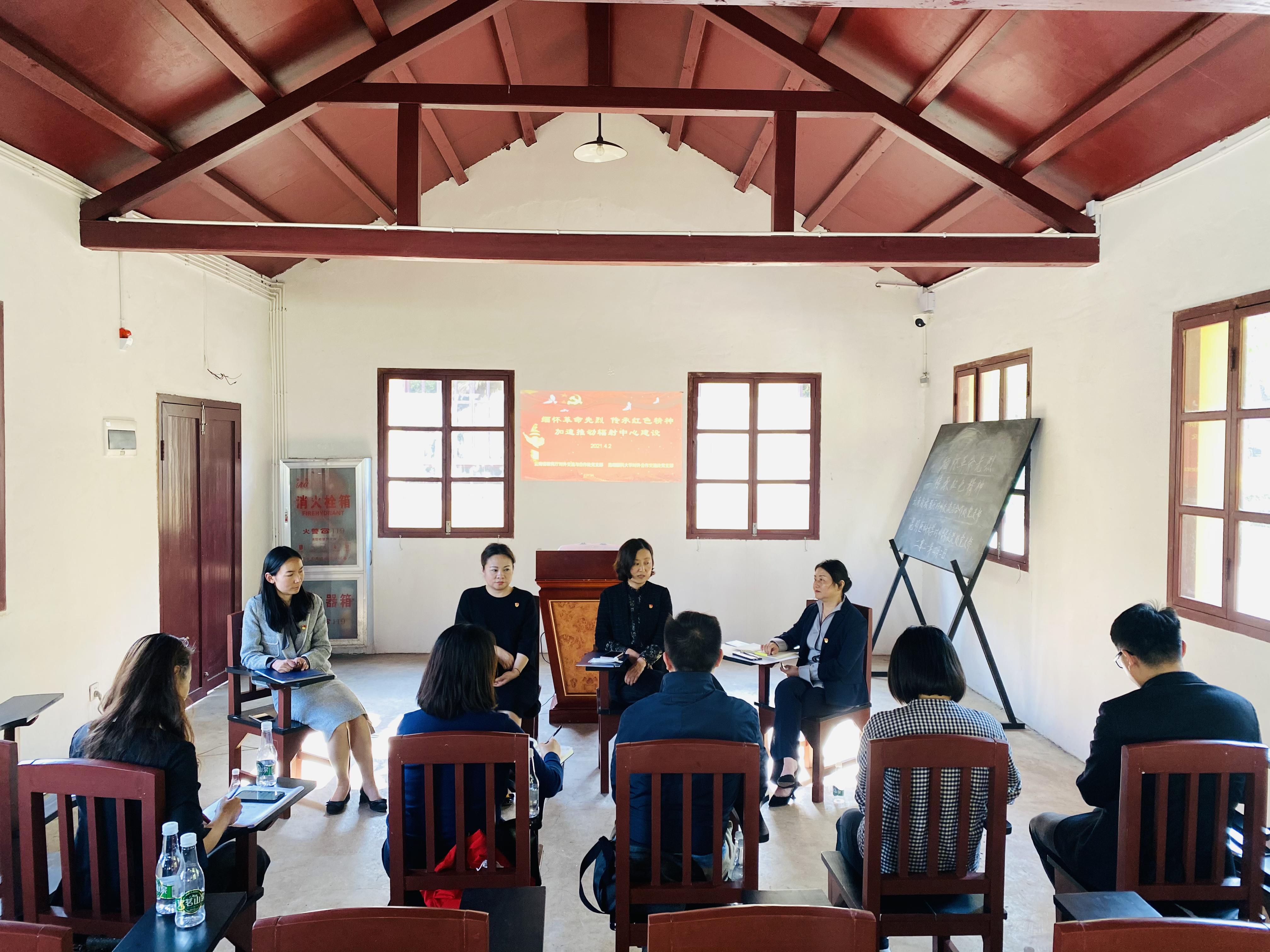 4月2日,在清明节来临之际,为缅怀革命先烈,深入开展党史学习教育,伟德国际1949官网对外合作交流处党支部与云南省教育厅对外交流与合作处党支部在西南联大博物馆共同开展了主题为“缅怀革命先烈 传承红色精神 加速推动辐射中心建设走深走实”的支部共建主题党日活动。