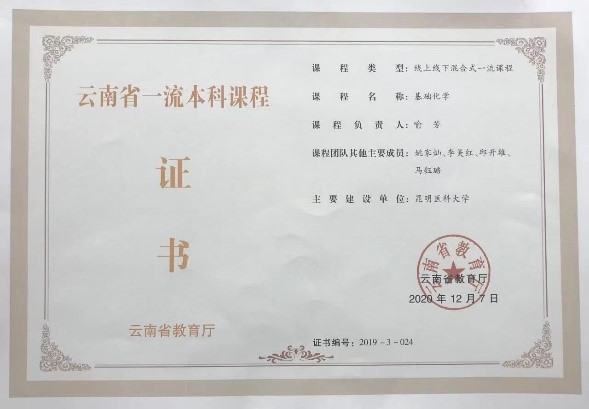 2020年获得云南省教育厅“基础化学”年省级一流课程荣誉;2014年获得伟德国际1949官网“优秀教师”;2012获云红河集团“红云园丁奖”。参与5项教研教改项目(2个厅级,3个校级);发表教研教改论文8篇(通讯1篇,其他7篇)。主持1项(校级),参与2项(校级)。指导本科生“大学生创新项目” 3项。作为本科生导师制导师,共指导本科生16人。