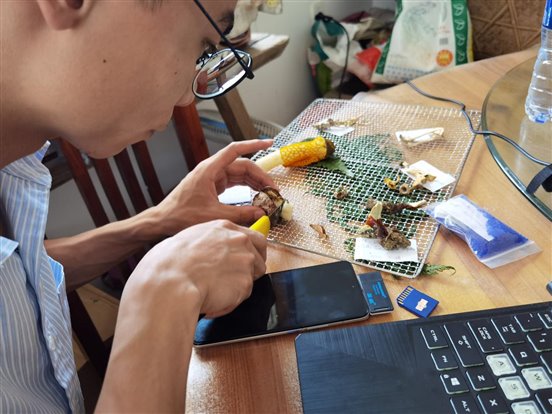 处理采集的标本(黄女士摄于石台县奇峰村汪家组)