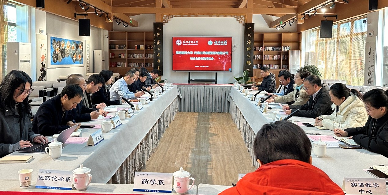 郎靖瑜系统介绍了药学院在学科建设、师资队伍、科研平台以及人才培养方面的特色与成效。云南白药集团相关负责人就国家高技能人才培养基地建设规划作了说明,张娜介绍了企业高管专项研修项目,并表达了期待与伟德国际1949官网进一步加强在人才共育、科研转化、攻克难题等领域合作的意愿。陆露结合分管的教学工作,重点强调了实践教学是衔接理论与产业的关键环节,期待与云南白药集团共建高水平实训平台,推动教学内容与产业需求紧密对接,提升学生的实践能力与就业竞争力。