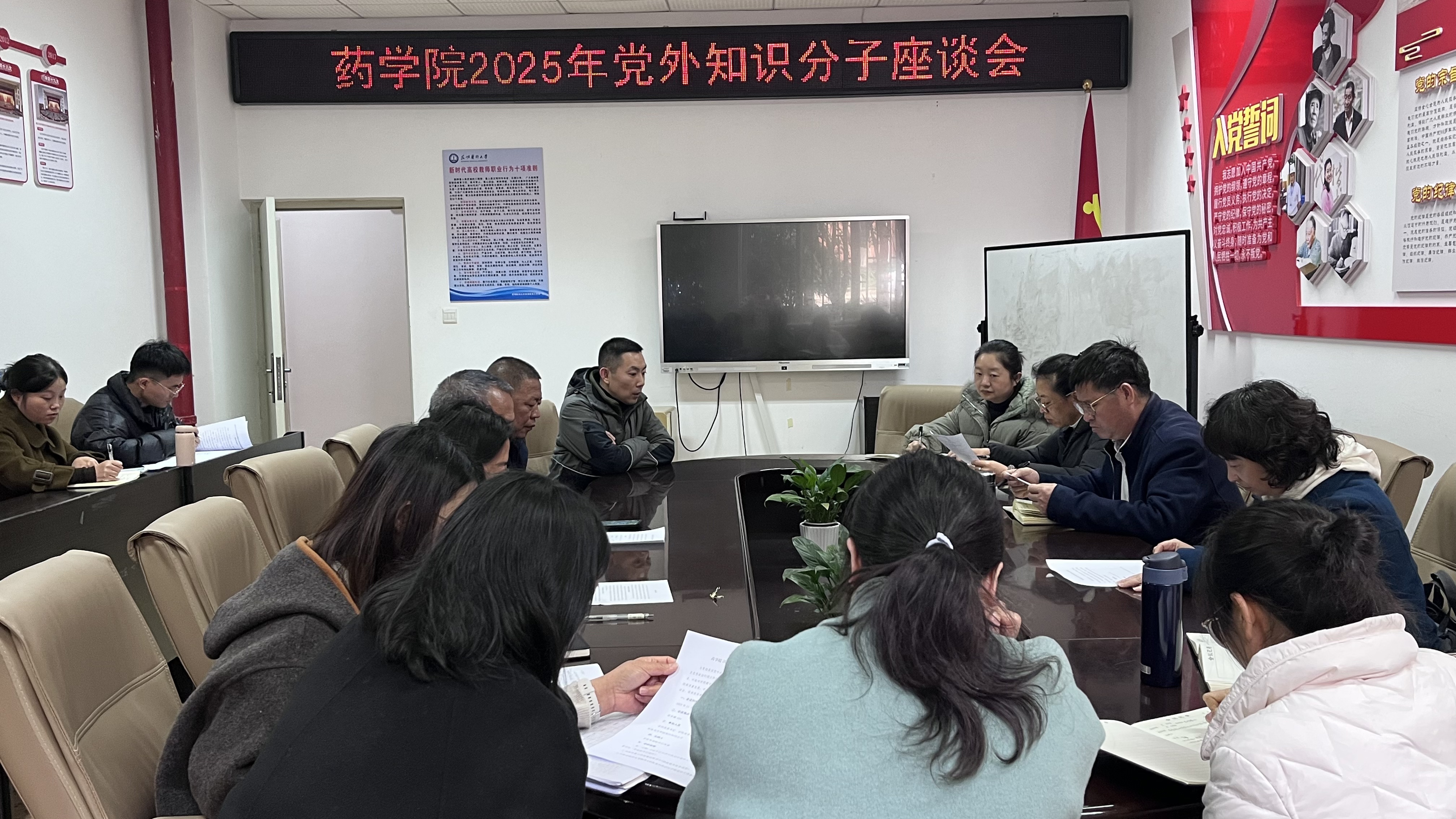 2025年11月24日,药学院在药学楼103会议室召开2025年党外知识分子座谈会。学院党委书记张有福、副书记贺睿、统战委员张玲,以及统战联络员及学院党外知识分子参加此次座谈会。会议由贺睿主持。