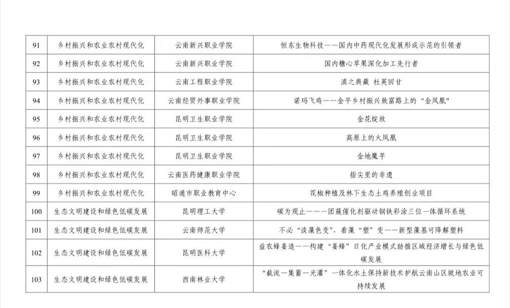 本届大赛得到了学校团委、药学院(云南省现代生物医药产业学院)的大力支持,自大赛开展以来,药学院(云南省现代生物医药产业学院)积极动员和组织学生参赛,院赛累计收到参赛作品36件,推荐5件高质量作品参加校赛,参赛学生达210余人,指导老师55人。经过层层选拔,2件作品进入省赛。备赛期间,学校团委精心采取专题讲座、“创业训练营”、一对一辅导、模拟答辩等形式,精心辅导与打磨,全力提供备赛支持。