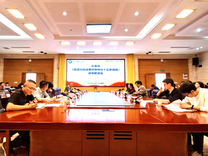 4月27日,由科技成果转化中心主办的云南省《促进科技成果转移转化十五条措施》(以下简称《十五条措施》)政策解读会在呈贡校区召开。会议由科技成果转化中心主任李璠主持。