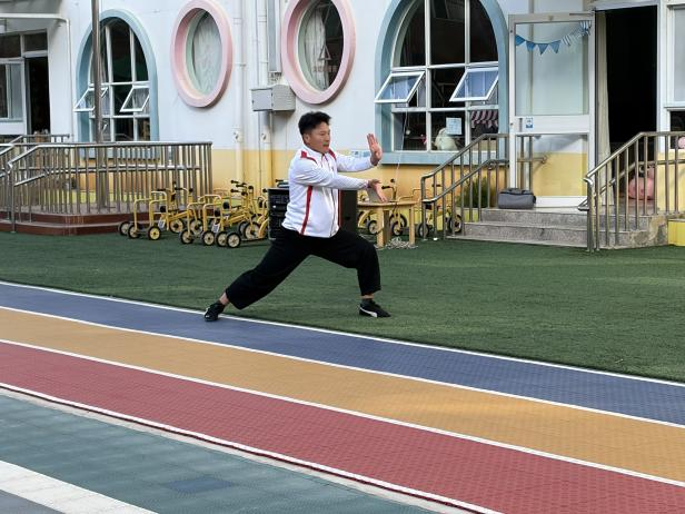 在随后的体验环节,老师们以游戏化、分步骤的教学方式,引导孩子们学习基础手型、步型及简单组合,于潜移默化中锻炼其身体协调性、平衡感与意志力,实现了中华传统武术文化启蒙与幼儿体能发展的有机结合。
