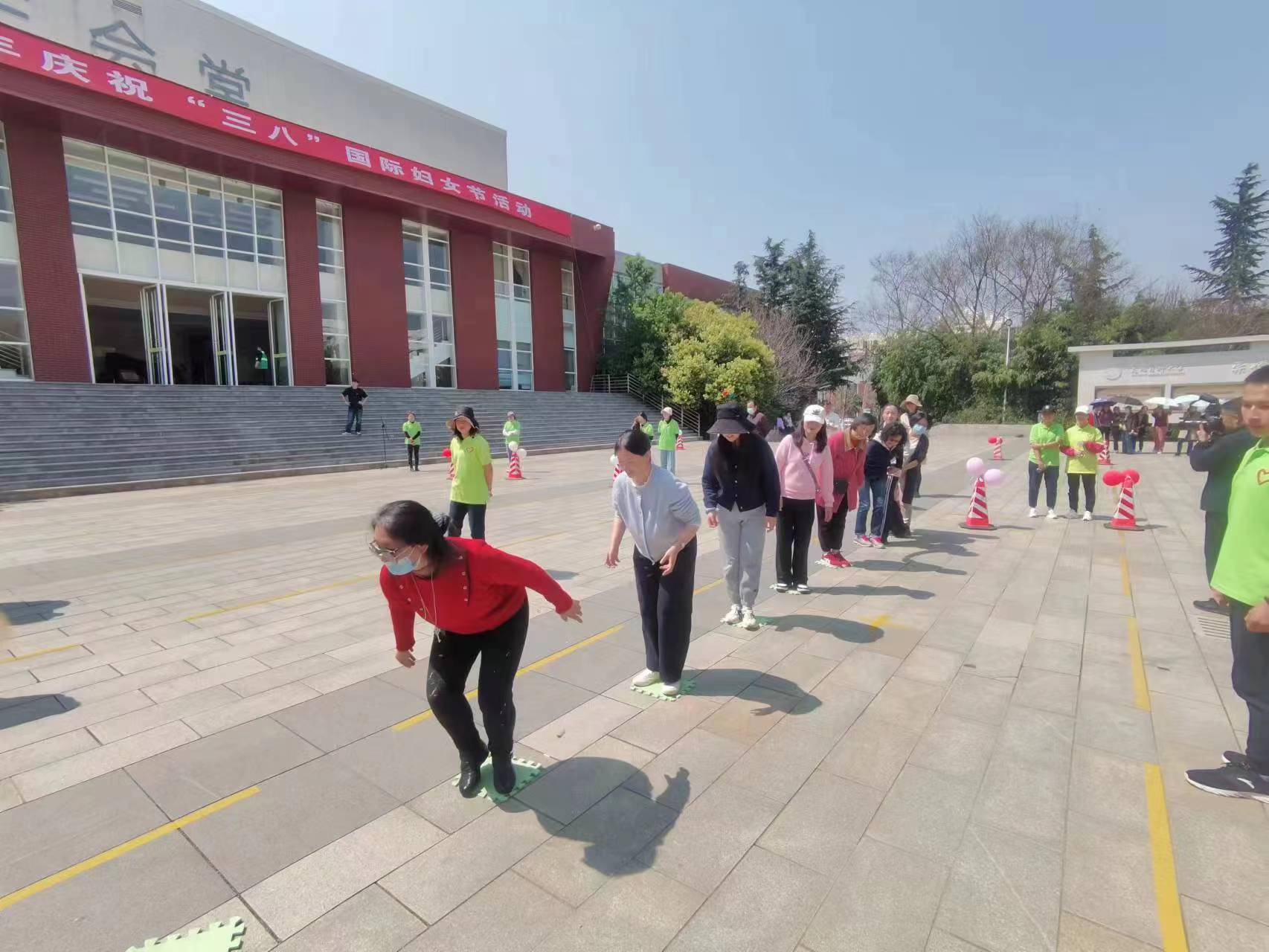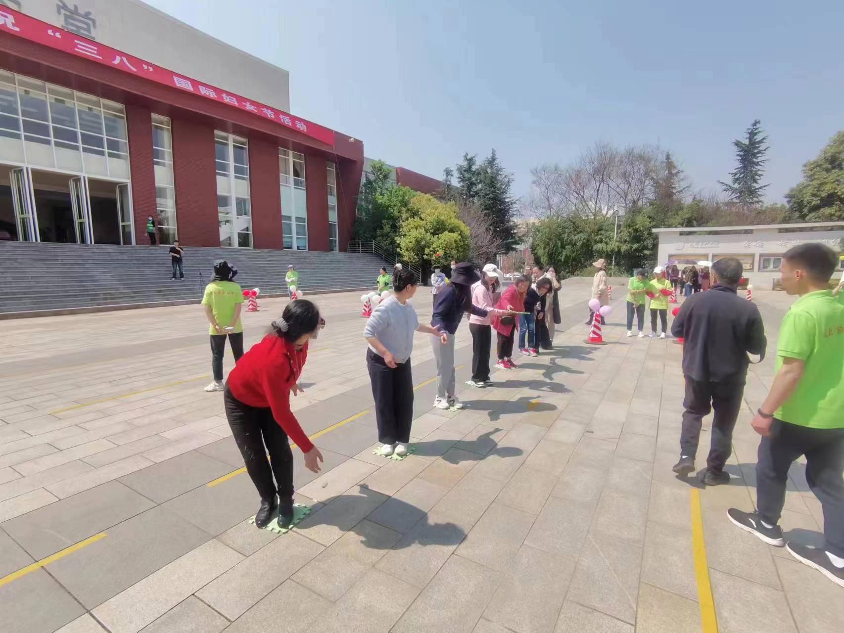 为纪念第113个“三八”国际妇女节,展示女同胞爱党爱国、爱校荣校、创先争优、奋楫笃行的精神风貌,3月8日下午,伟德国际1949官网在呈贡校区学生会堂前广场举行了庆祝活动,直属单位分会组织23名教师积极参加。