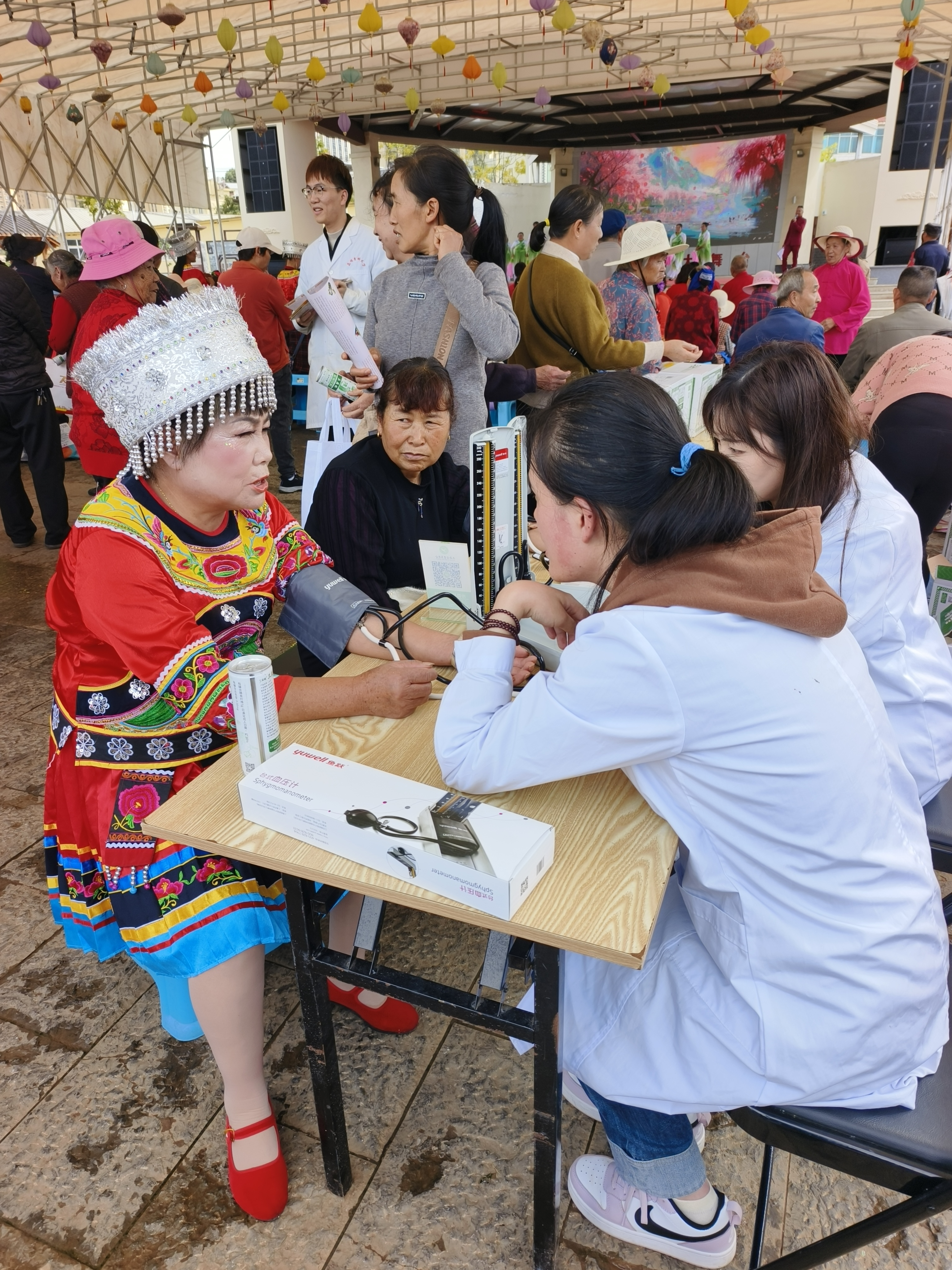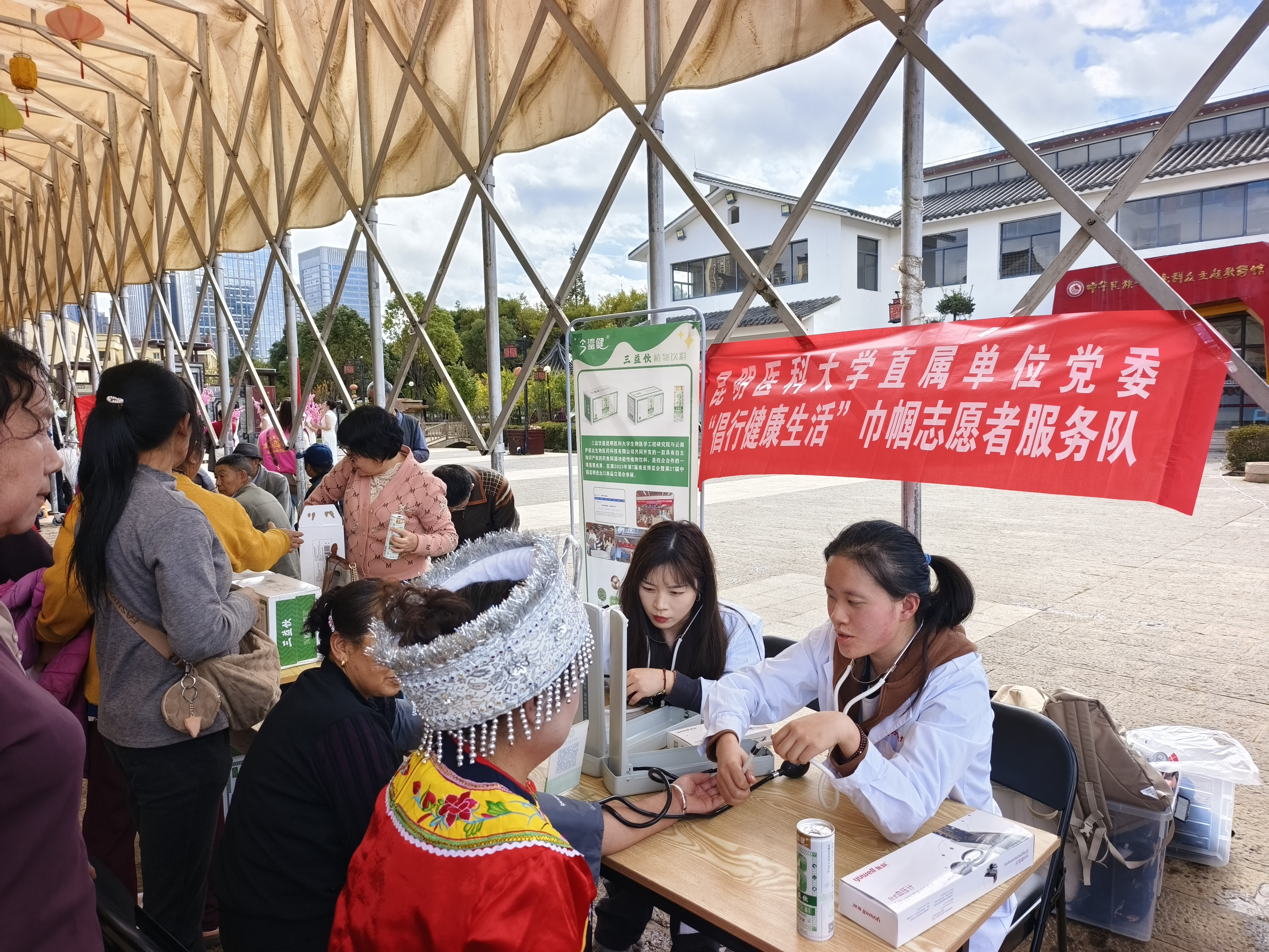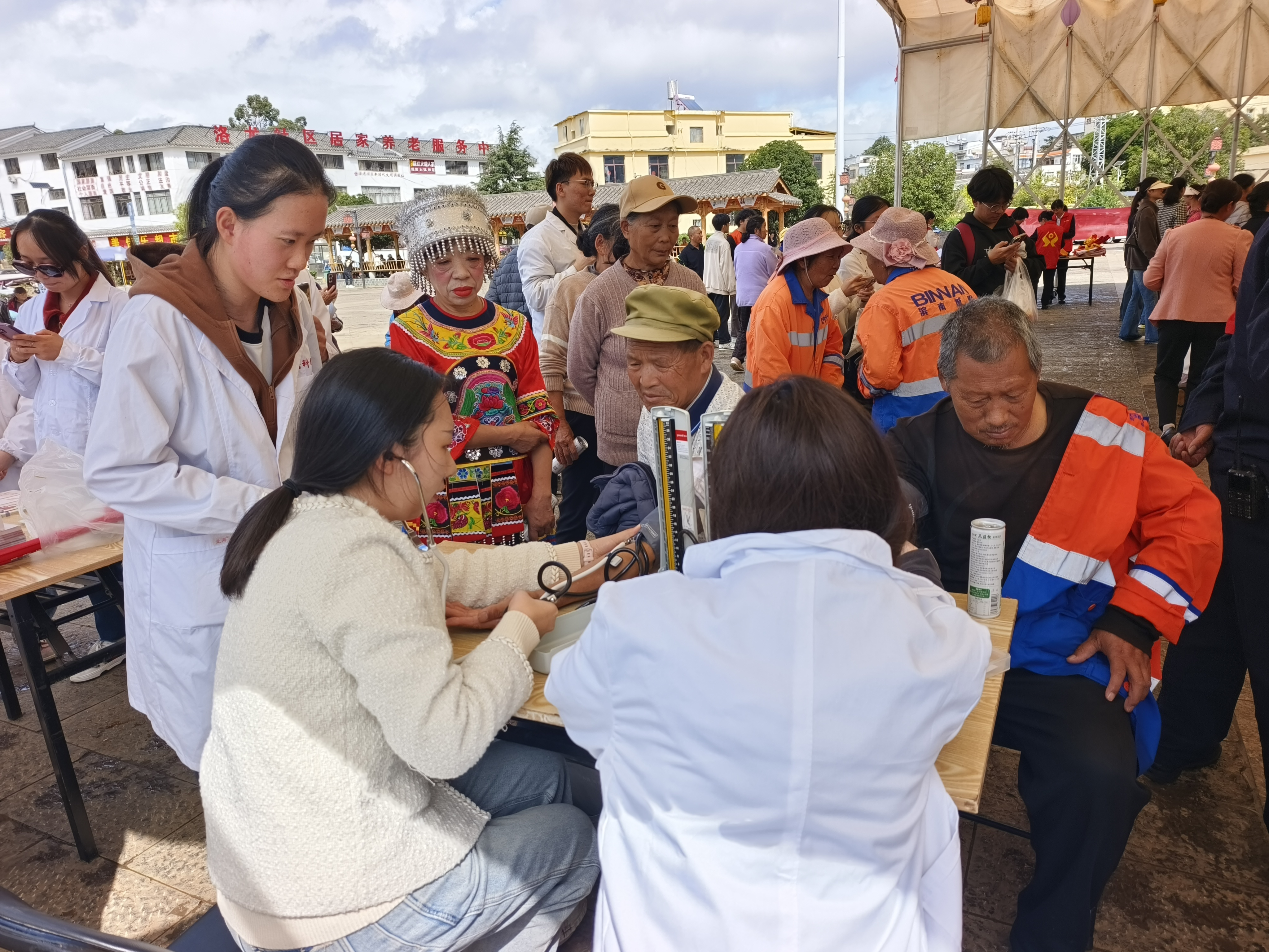 10月11日,学校校地合作协议单位昆明市呈贡区洛龙社区举办“情暖重阳颂盛世 中华民族一家亲”重阳节尊老敬老爱老活动,直属单位妇联分会组织了三支医疗义诊志愿服务队参加活动。