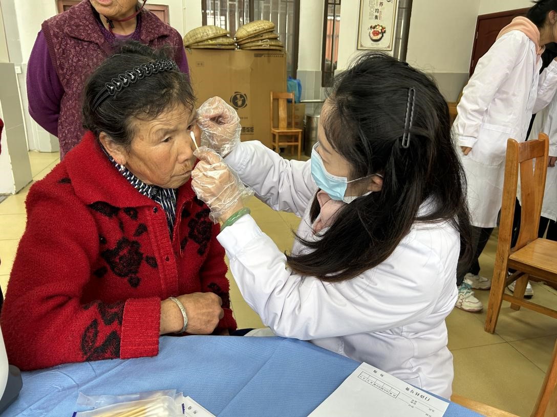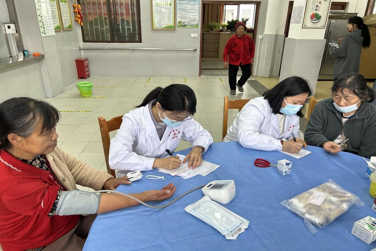 一支服务队由校医院医生14人和康复学院学生6人组成,为社区老年居民提供了慢病管理、用药咨询、康复治疗、眼科普查、血压、血糖及血氧饱和度检测等服务。通过对社区老年居民进行一对一的专业指导,向居民普及常见疾病的预防与治疗方法,帮助社区居民了解和预防疾病,提高健康意识及水平。康复专科医生、治疗师针对老年人群特点进行了心脏康复、听力康复、神经肌骨康复、疼痛等方面详细的讲解和专业指导,并现场为社区居民进行简单实用的康复训练。