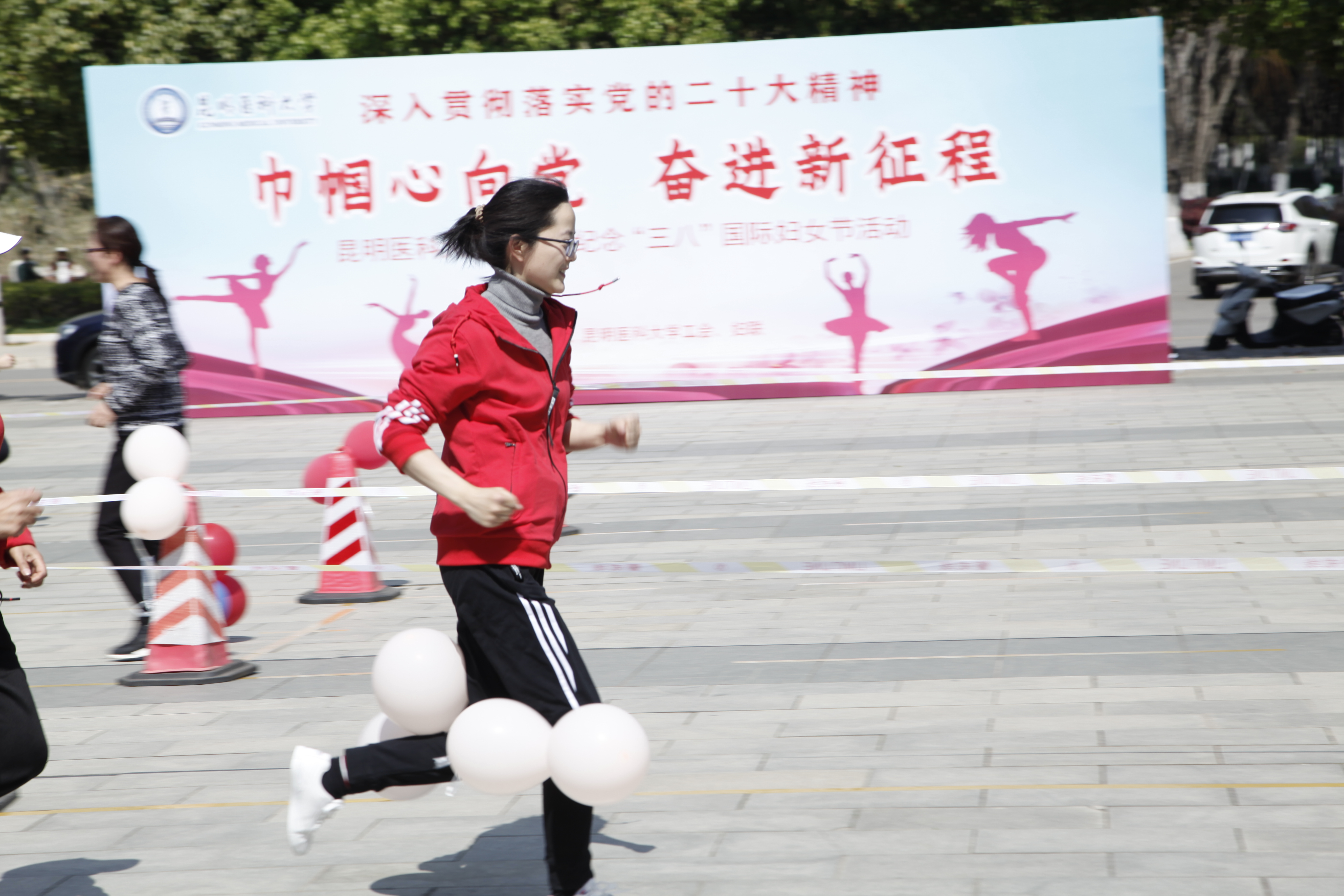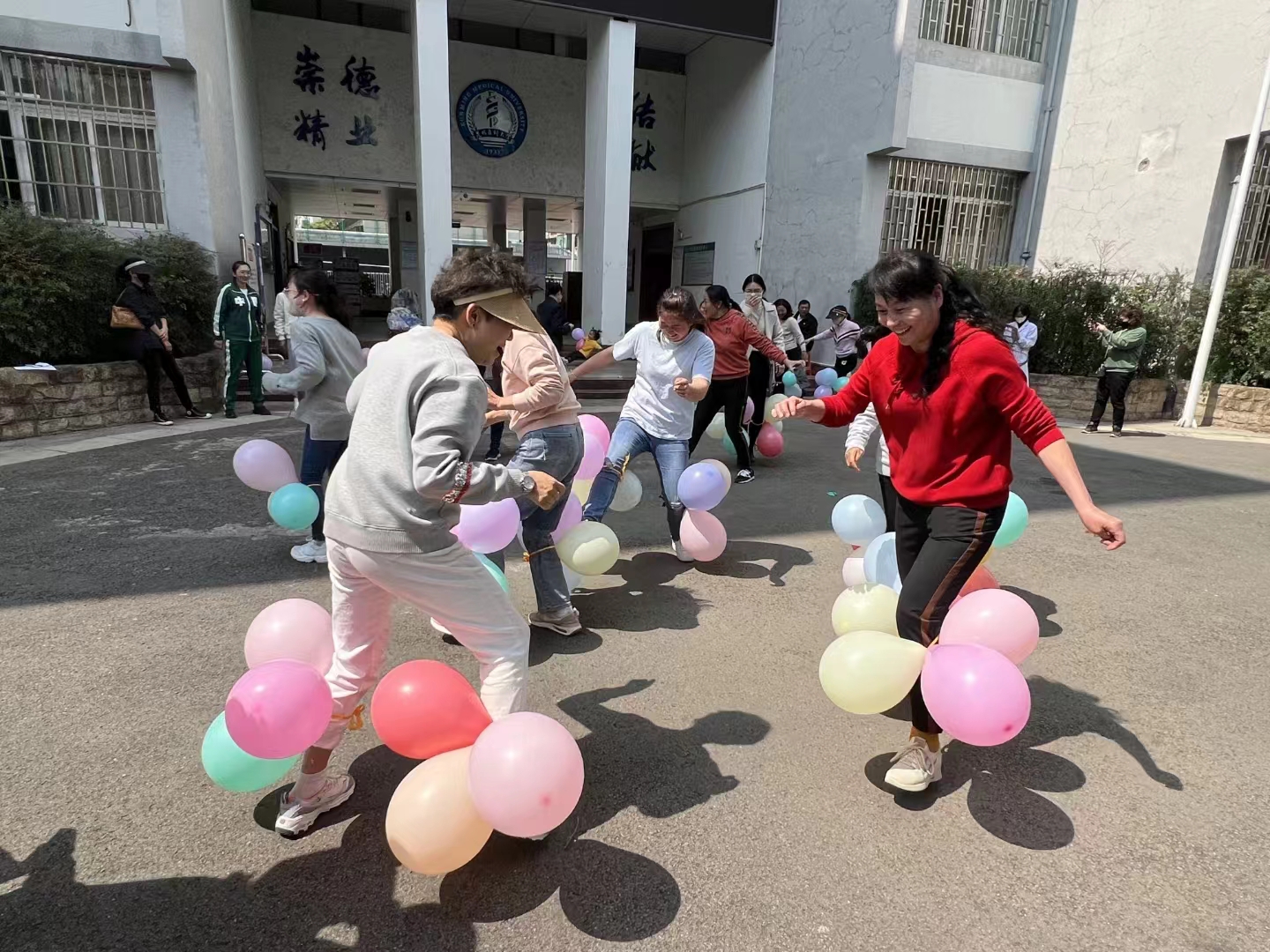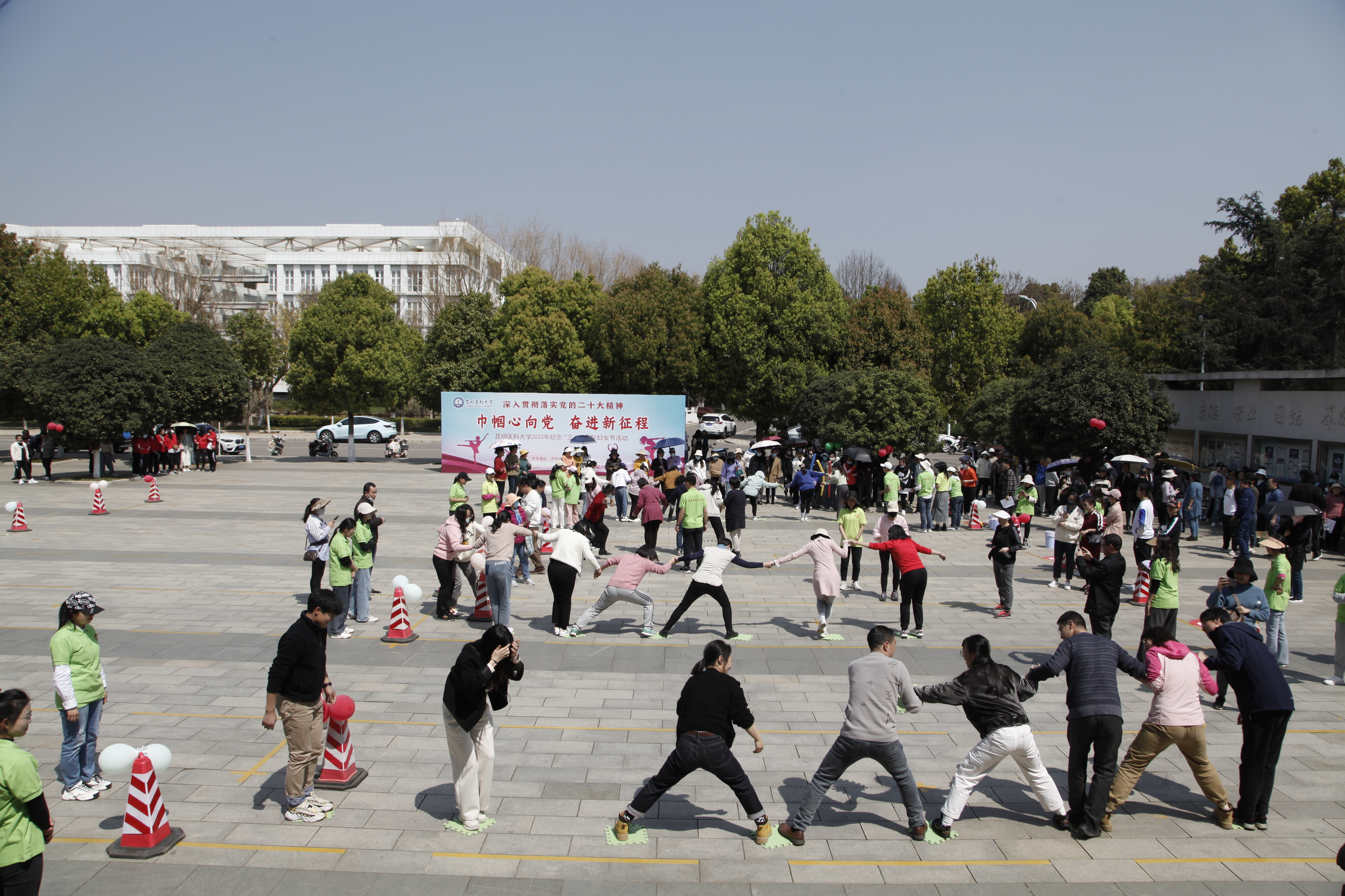 呈贡校区开展了女同胞的趣味活动,“铺地砖”“抢种抢收”“滚铁圈”“踩气球”等集体项目精彩纷呈,各部门负责人带头参与活动,女职工们踊跃参与,男职工们积极配合,第一次参加活动的女同学们热情高涨,学校“锦鲤啦啦队”带来了“巾帼展宏图,九州春意浓”啦啦操表演,活动现场气氛热烈。各部门工会还开展了“投箭如壶”“鱼戏珠鲤”“跳房子”“筷子夹乒乓球”“蒙眼互打”等别出心裁的个人项目,女同胞们共同度过了一个欢乐祥和的节日。