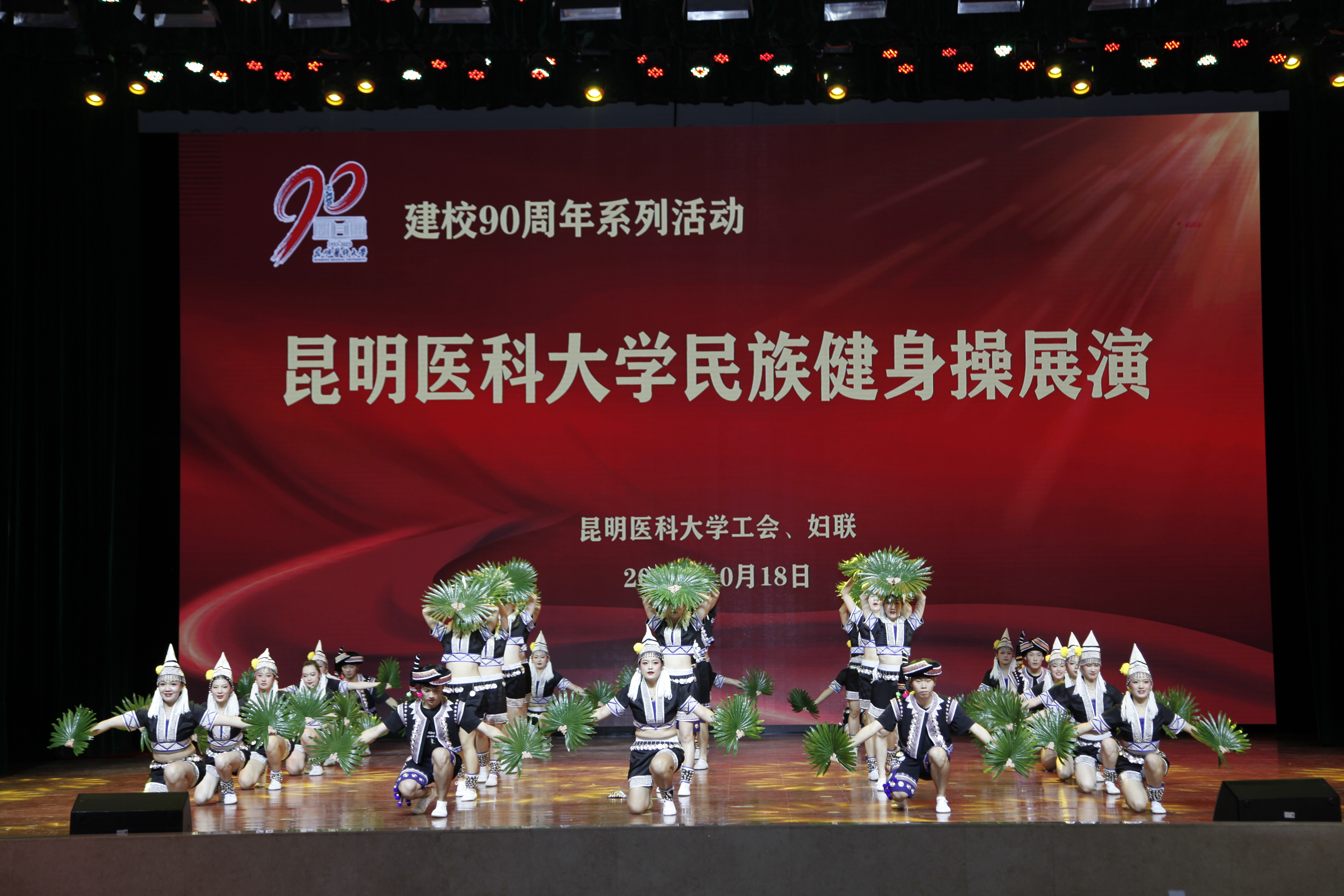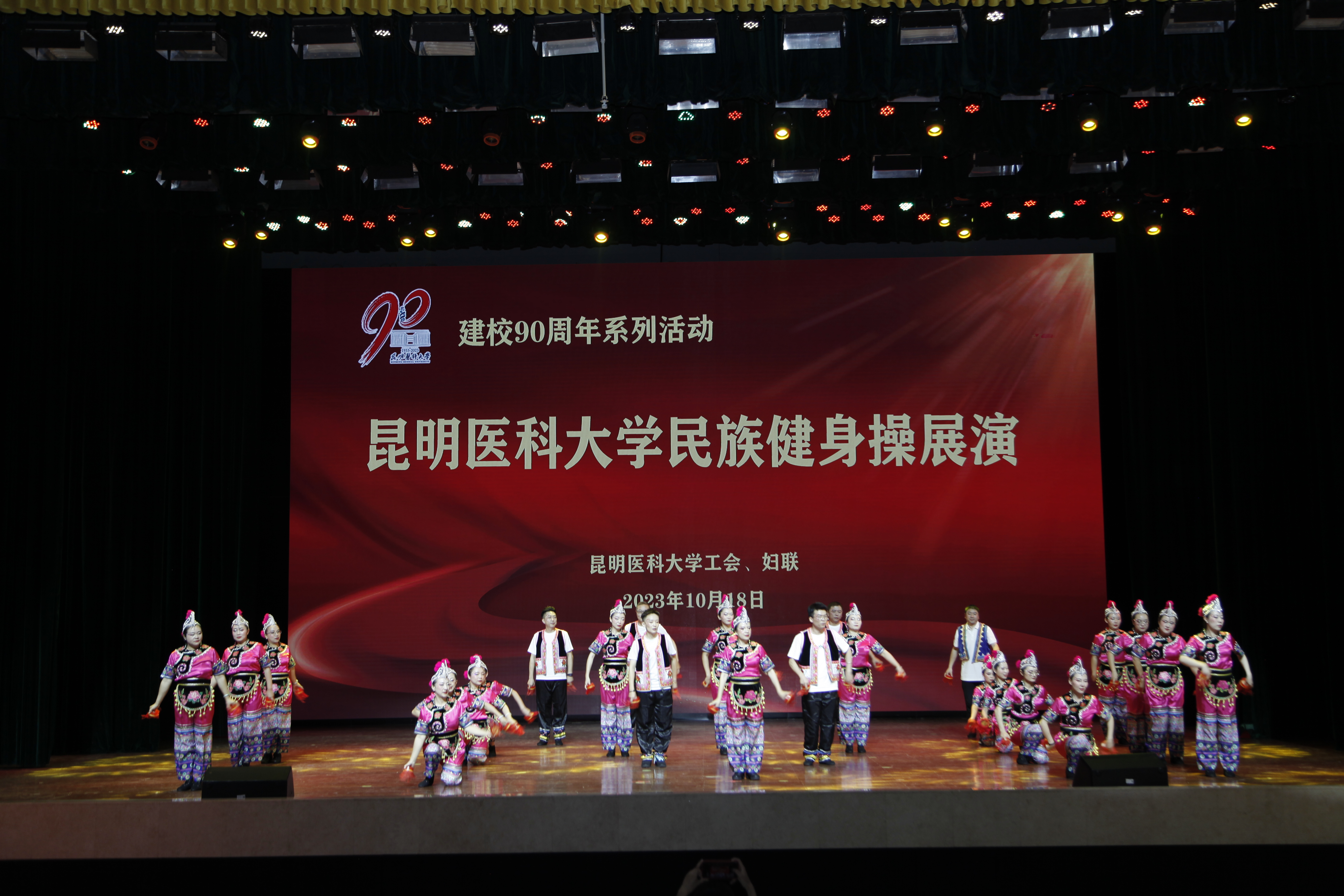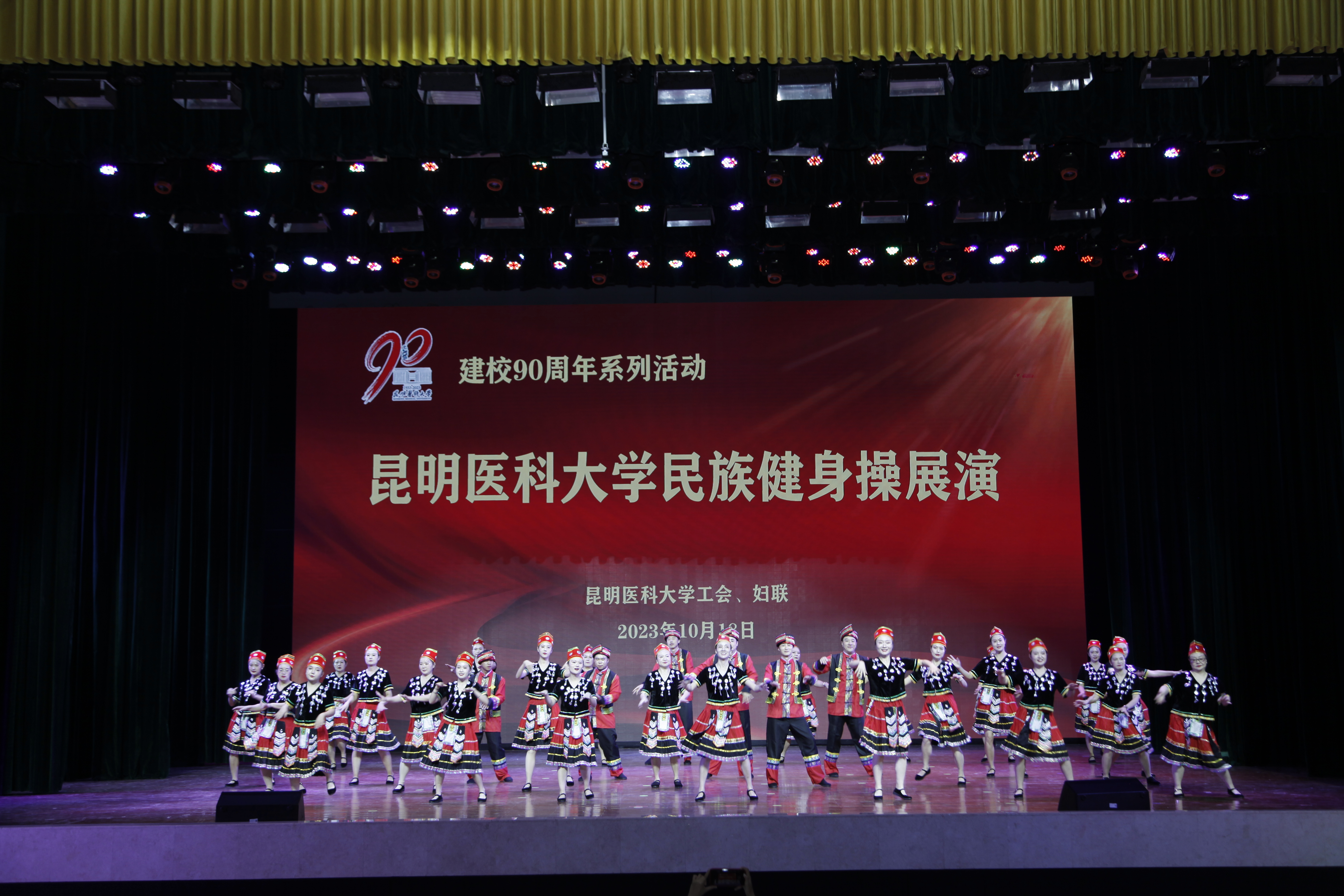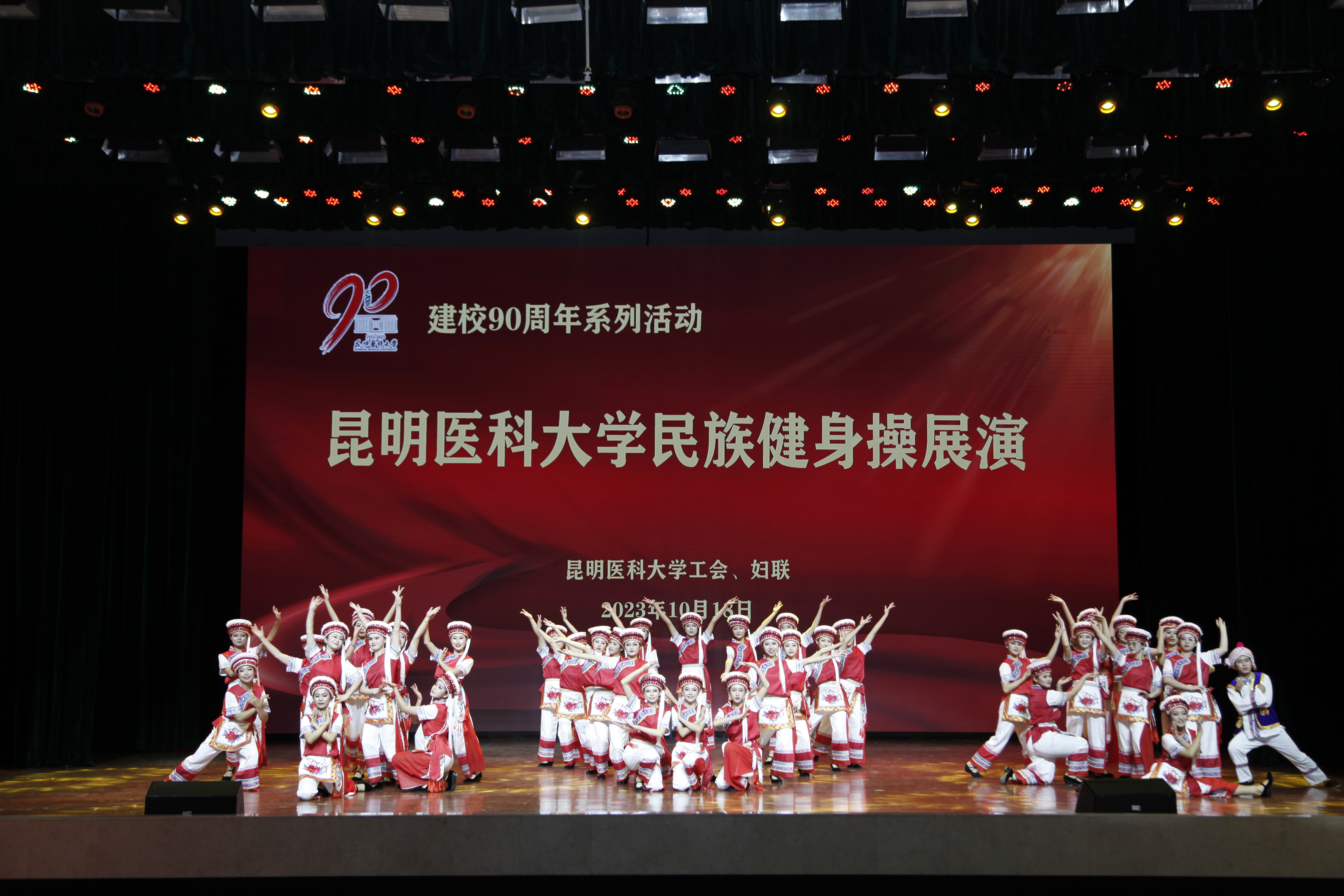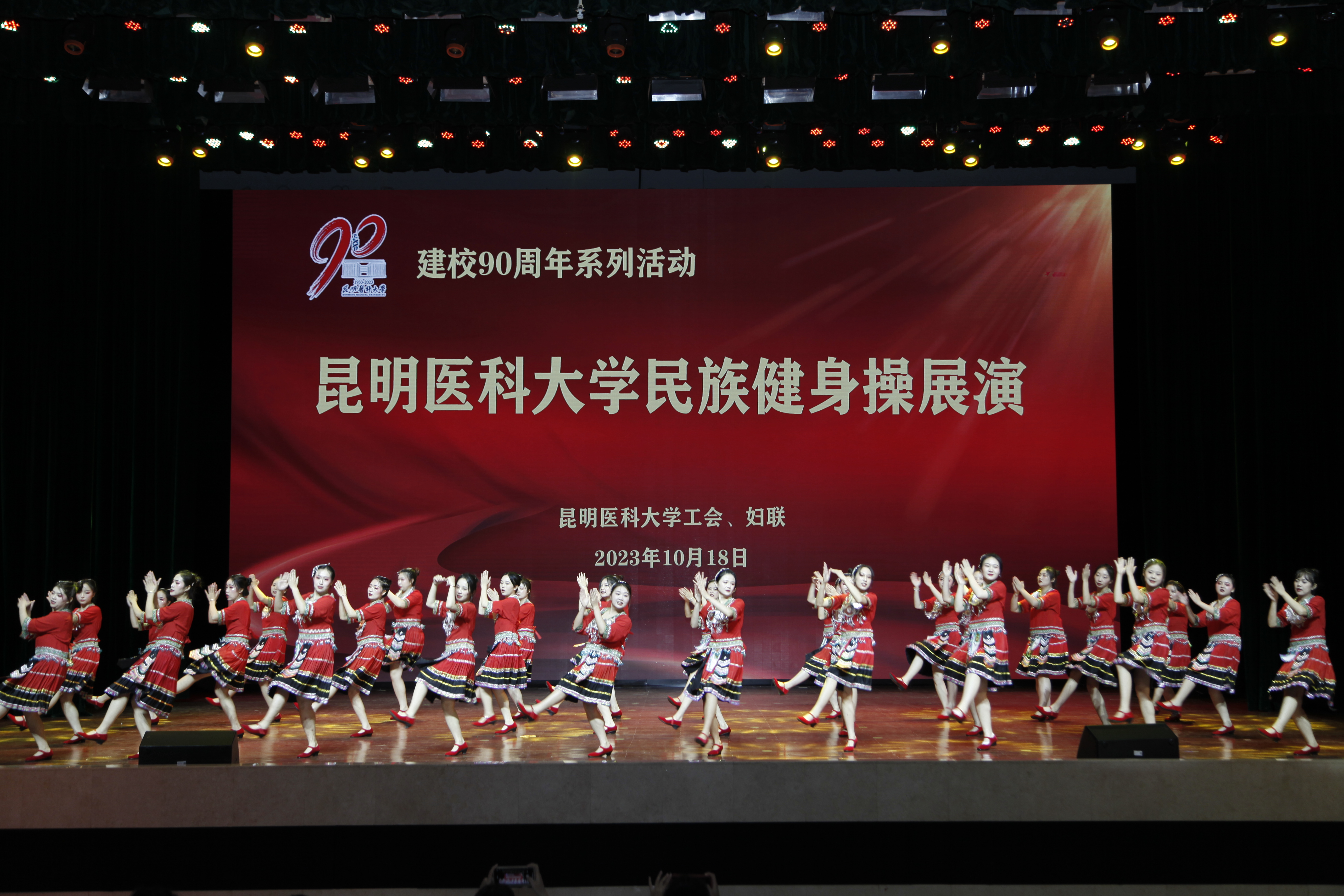 10月18日晚,伟德国际1949官网建校90周年系列活动——民族健身操展演在呈贡校区学生会堂举行。伟德国际1949官网党政领导,相关部门、学院负责人,校工会委员、校妇联执委及师生代表近1200人观看了演出。