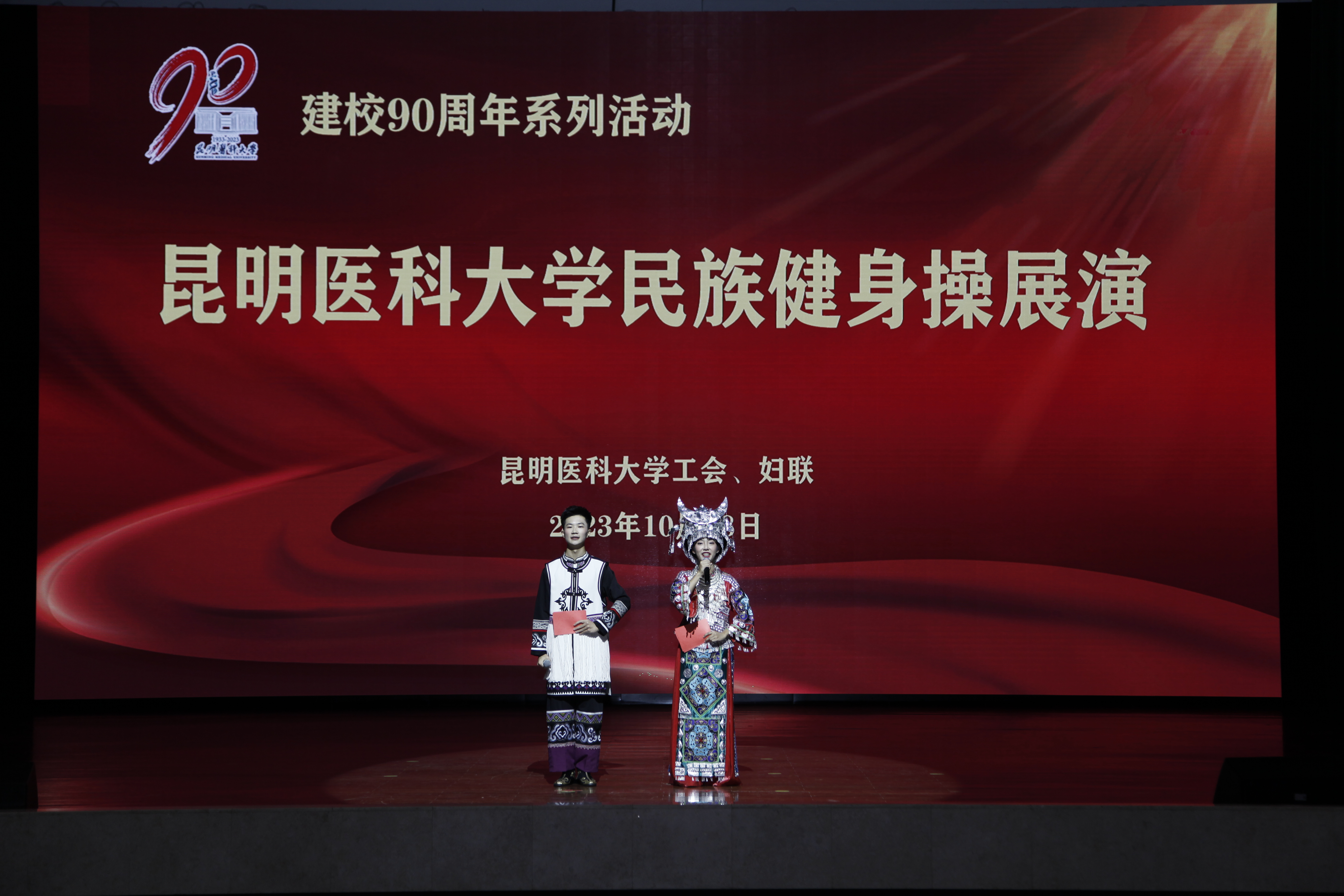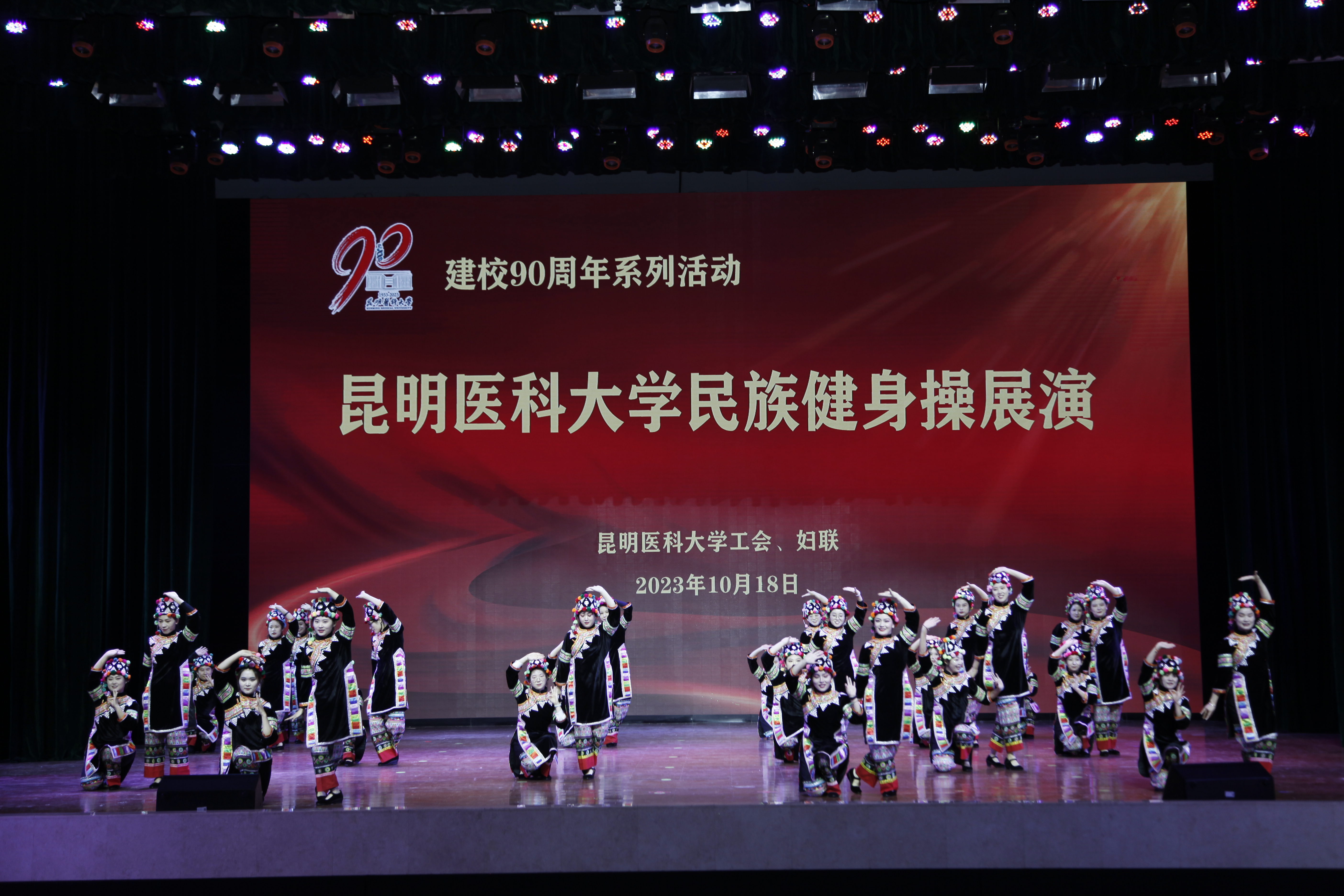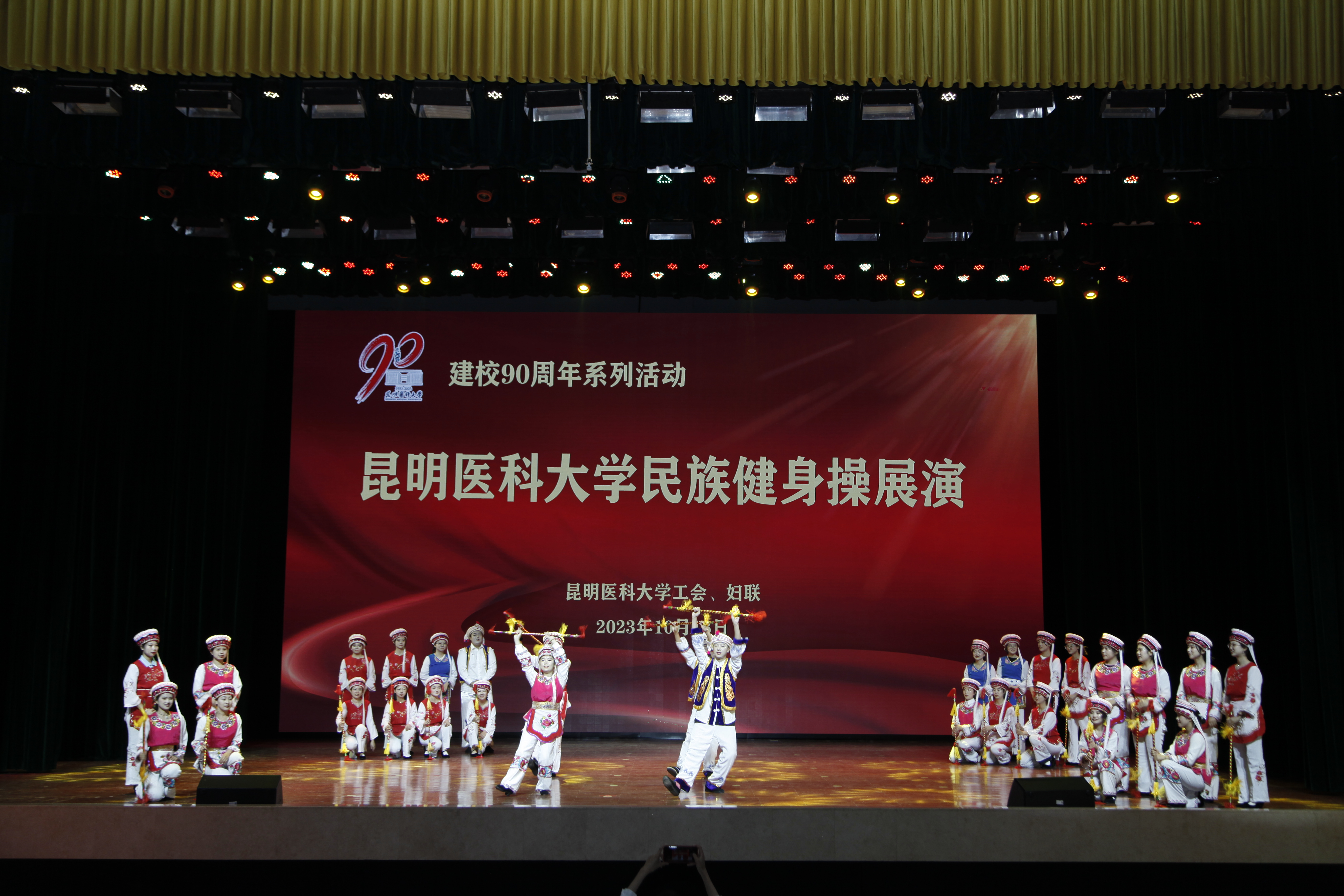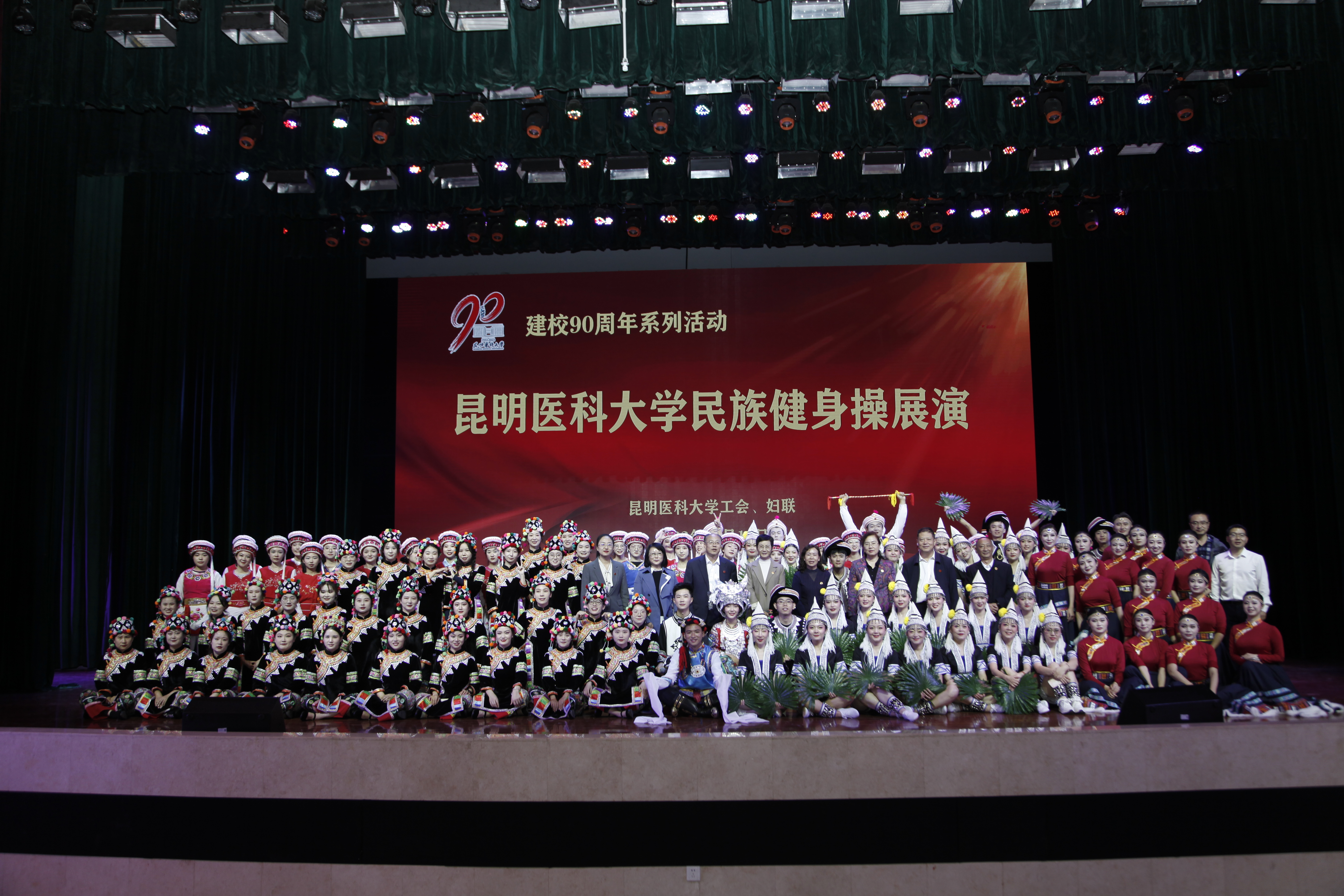 10月18日晚,伟德国际1949官网建校90周年系列活动——民族健身操展演在呈贡校区学生会堂举行。伟德国际1949官网党政领导,相关部门、学院负责人,校工会委员、校妇联执委及师生代表近1200人观看了演出。