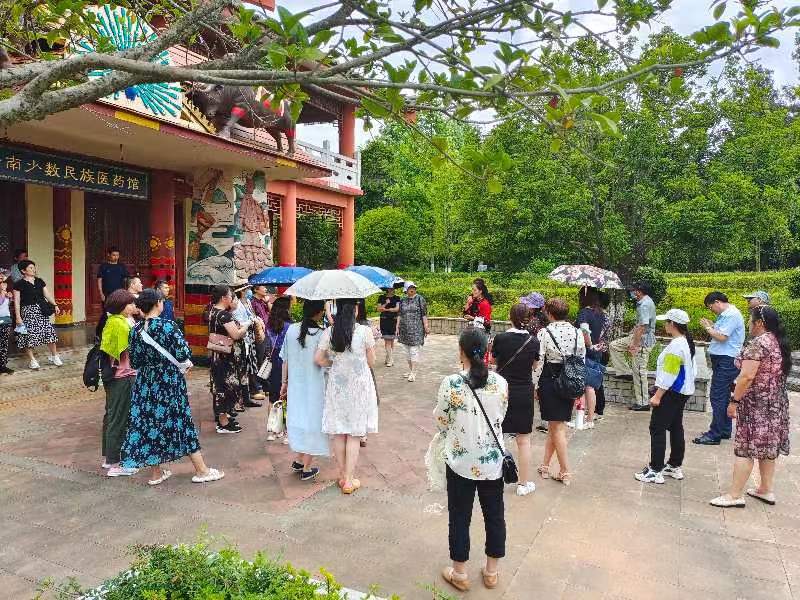 经过2小时的车程,到达了石林杏林大观园。四天的疗休养活动满满,参观中华医史馆和中医药文化展览馆,了解中华五千年中医药完整的历史文化;傍晚浓郁民族风的篝火晚会和晨曦的拓展活动,在欢声笑语中为教职工放松身心、加强交流搭建了平台;每天早晨的早操五禽戏、八段锦,大家仿佛回到了学生时代的早晨,重拾了青春;石林,因其发育演化的古老性、复杂性、多期性和珍稀性以及景观形态的多样性,成为世界上反映此类喀斯特地质地貌遗迹的典型范例和“石林”二字的起源地,给教职工提供了一次很高的地学科普。