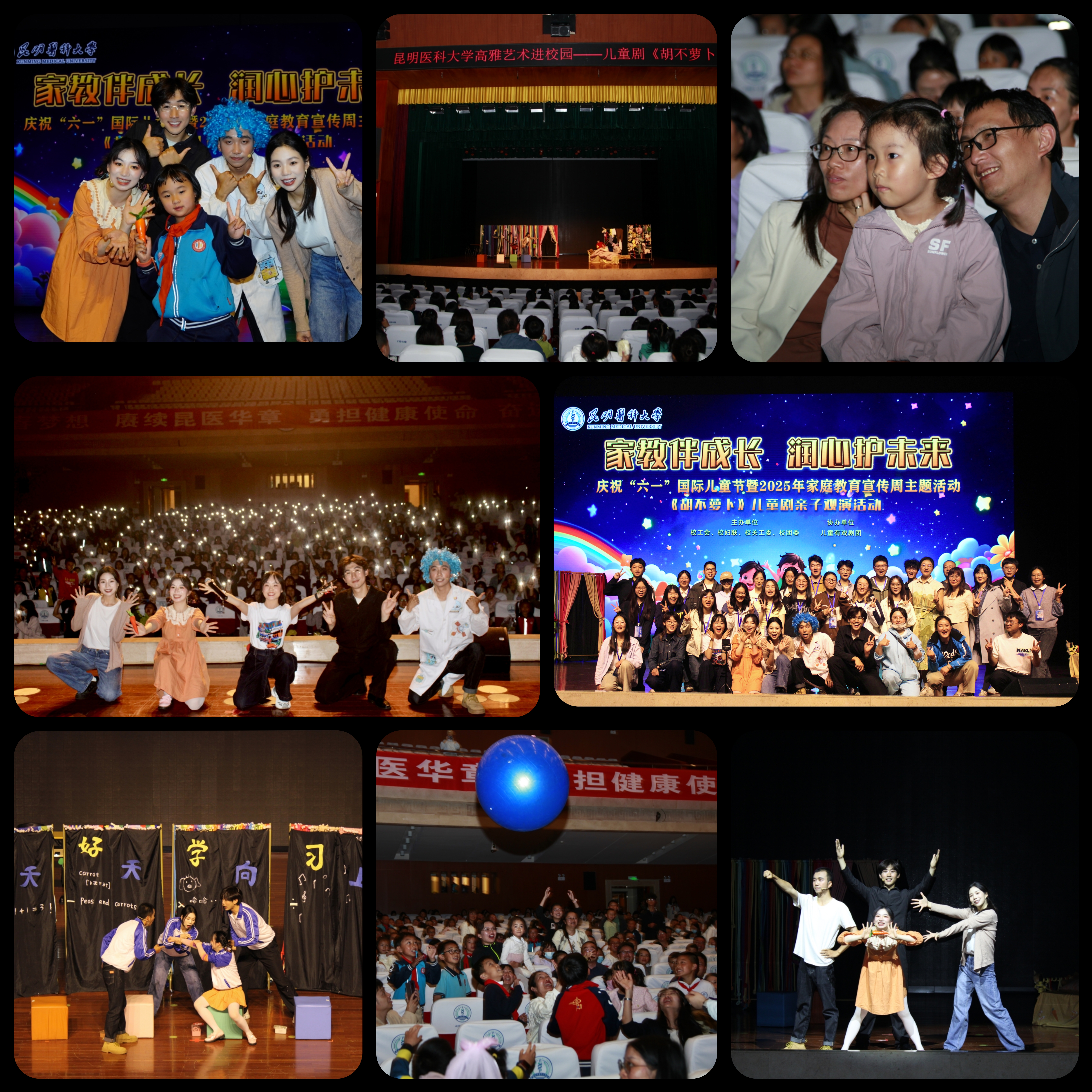 5月23日,由学校工会、妇联联合学校关心下一代工作委员会(以下简称关工委)、校团委在呈贡校区举行庆祝“六一”国际儿童节暨2025年家庭教育宣传周主题活动——儿童剧演出。学校党委副书记、校工会(妇联)主席徐绍琼,校工会委员、妇联执委、关工委委员,学校教职工及子女、昆医附小、昆医幼儿园师生、大学生近1000人一同观看了演出。