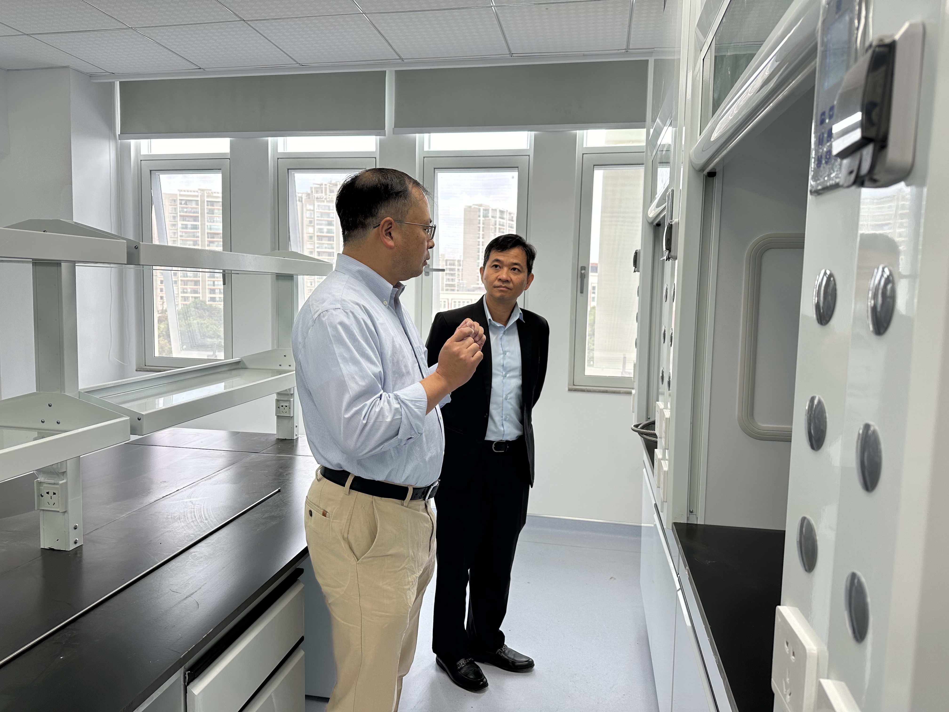 Rothmony EANG首先参观了我院正在改造建设中的云南省天然药物药理重点实验室,郎靖瑜向其详细介绍了改造项目的目标和建设进展情况,指出重点实验室改造是学校为了对接“健康中国”战略和“双一流”建设目标而投入的重大基础设施建设项目,以“交叉融合、开放共享”为核心,重点布局人工智能辅助药物设计和分子靶点筛选平台、现代化药理药效评价平台、云南特色真菌和药用植物化合物研究平台。同时,规划了药学大型仪器共享平台、细胞培养室及标准化P2+实验室,旨在打造贯穿药物研发全链条的创新研发体系。Rothmony EANG对改造工程表示高度赞赏并表示:“如此大力度的投入,充分体现了伟德国际1949官网对药学学科发展的高度重视与远见卓识。这座现代化的科研大楼,不仅是一个物理空间,更是一个孕育重大创新成果的摇篮,必将极大地提升药学院的原始创新能力和竞争力。”