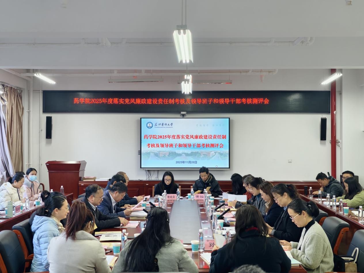 11月28日上午,药学院在204会议室组织召开2025年度落实党风廉政建设责任制考核及领导班子和领导干部考核测评会。学校考核组一行在学校党委常委、副校长奚春睿的带领下莅临指导,考核组成员包括学校党委委员、学生工作部部长、武装部部长杨国华,第二附属医院暨第二临床医学院纪委书记盛海,法医学院党委副书记卢蓉,法医学院党委委员、副院长李晓堰等11位同志。药学院党政领导班子成员、中层干部及教师代表参加了会议。会议由药学院党委书记张有福主持。