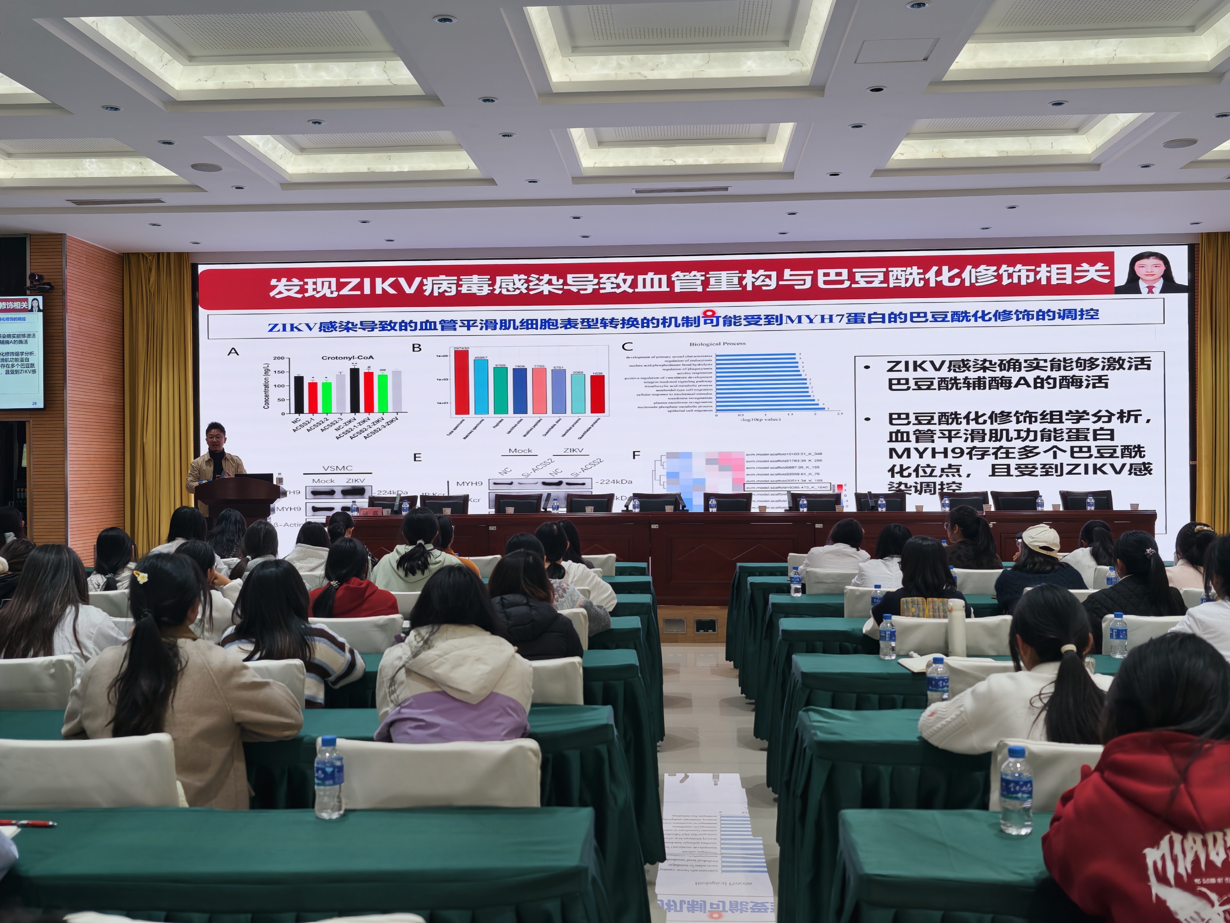 座谈会还开展了专题讲座与经验分享。陆露系统讲解了药学专业人才培养方案、课程体系设置及本科阶段学习的重点;药学院郑昌博副教授以《病毒感染与心血管损伤》为题进行了药学领域科学发展前沿动态的专题讲座分享。此外,药学院保研本科生李鸣分享了个人学习经验,为3+2高本贯通培养的学生们提供了实用参考。整场座谈会中,同学们展现出高度的学习热情与积极的参与态度,现场交流氛围浓厚,为高本贯通人才培养工作的深入推进奠定了良好基础。