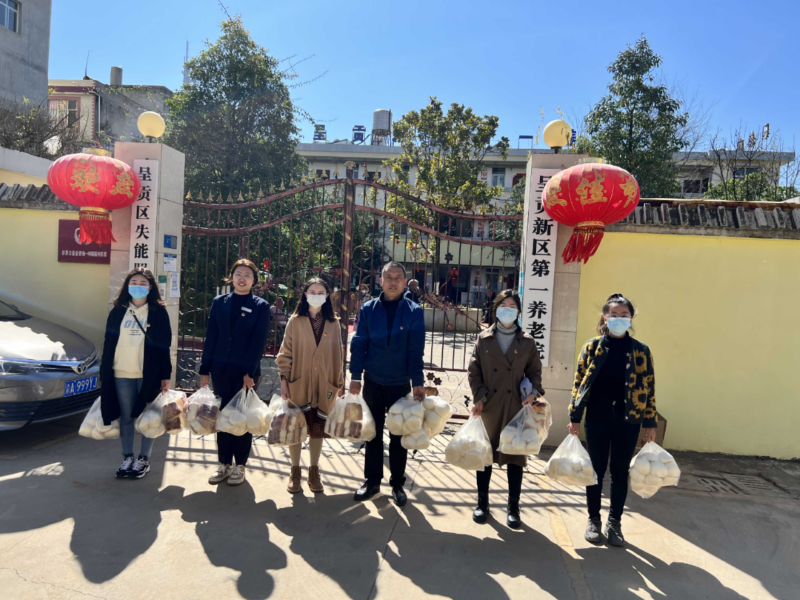 后勤中心团委于3月4日开展了“学雷锋”活动。后勤中心团委干部、部分团员在后勤中心团委书记刘晓辉的带领下,一同前往呈贡区吴家营敬老院,为敬老院的老人们送去温暖和祝福。200个具有昆医特色的馒头、50份家园烘焙的面包,是此次后勤中心团委为敬老院送去的慰问,礼物虽轻,情谊却重。除了昆医特色的慰问品,中心团干部、团员还在敬老院门口进行了卫生清扫,确保老人的生活环境。