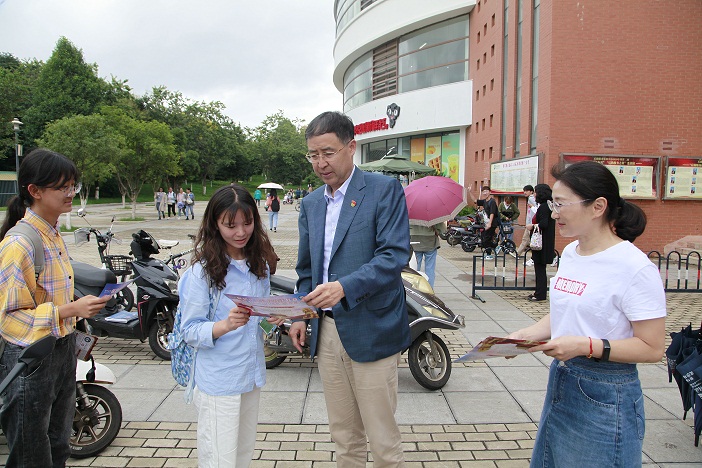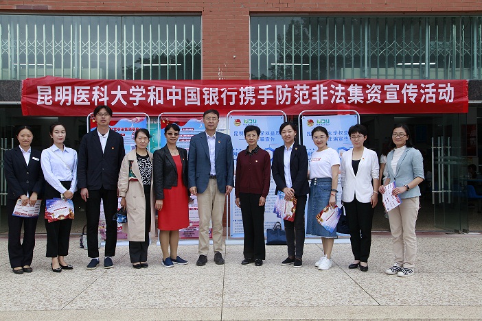 7月2日上午,伟德国际1949官网和中国银行在伟德国际1949官网呈贡校区西苑二食堂前广场共同开展“防范非法集资”宣传活动。在活动现场,学校通过制作宣传展板、悬挂宣传标语、发放宣传单等多种形式,向师生广泛宣传《防范和处置非法集资条例》,并就非法集资的概念、形式、特点以及危害等向广大师生进行解读,提高师生风险防范意识和识别能力,引导师生远离非法集资。伟德国际1949官网校长李松等校领导,财务处全处人员、中国银行聚贤街支行行长杜丽红等人员在现场向师生们介绍了防范非法集资相关知识。