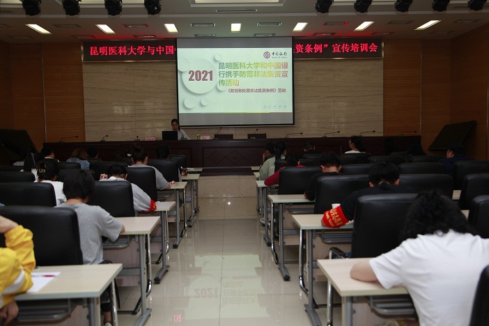 下午,伟德国际1949官网联合中国银行聚贤街支行在学术交流中心第二报告厅举行“预防和处置非法集资条例”宣传培训会,会议由财务处处长米文红主持,中国银行聚贤街支行理财经理周安琪主讲。财务处、资产处、学生处、资产经营公司等部门的老师及各学院学生代表等参加培训会。会上,周安琪对非法集资的特征及表现形式、非法集资人的法律责任、非法集资常见套路、如何防范非法集资及《防范和处置非法集资条例》相关知识进行了详细讲解宣传。