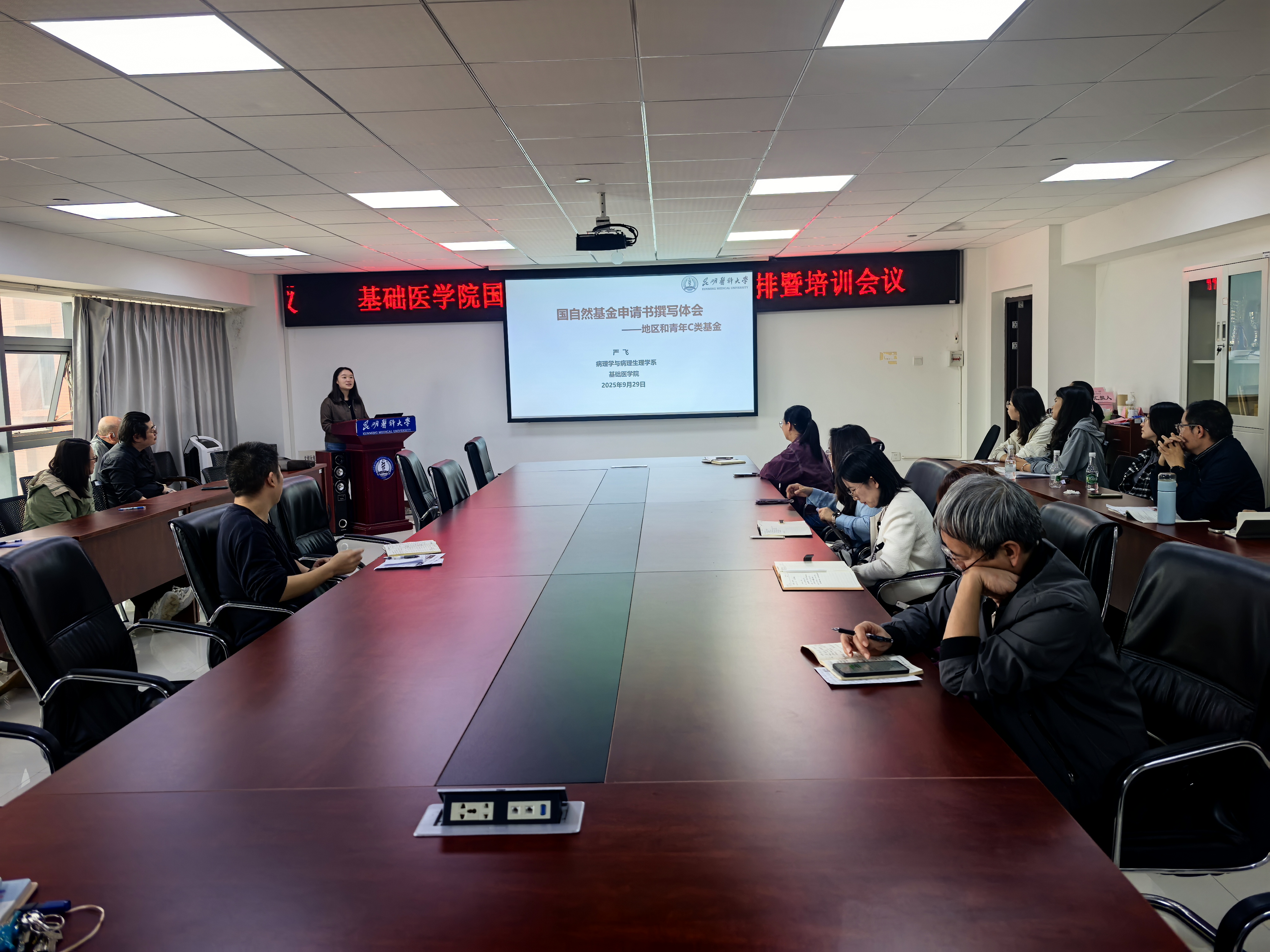 2025年9月29日,伟德国际1949官网基础医学院在东苑基础医药大楼614会议室召开学院2026年国家自然科学基金申报工作安排暨第一次申报专题培训会议。会议由学院分管副院长李盛安主持,各系(中心)中层干部以及全院45周岁以下博士学历教师参会。