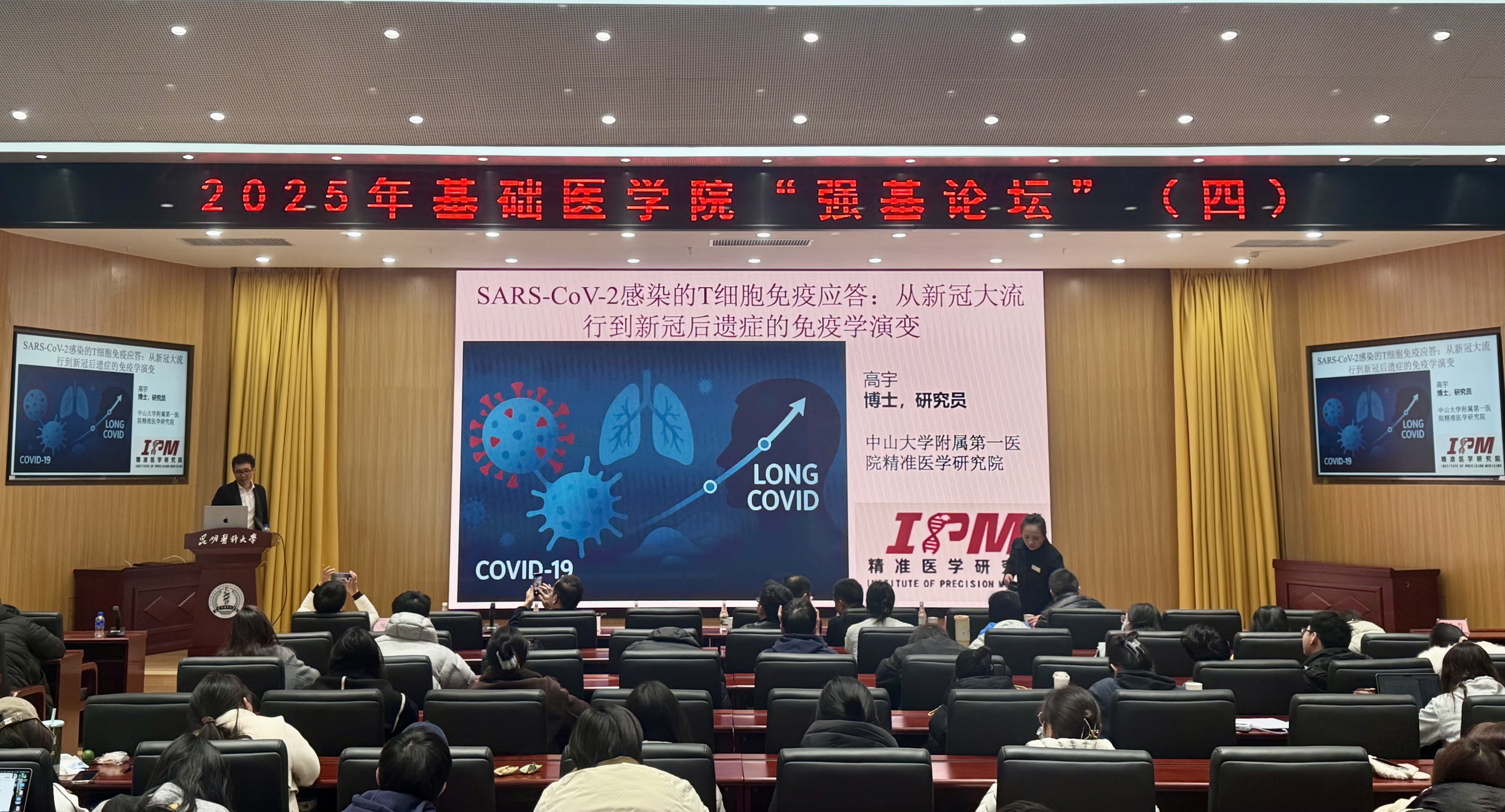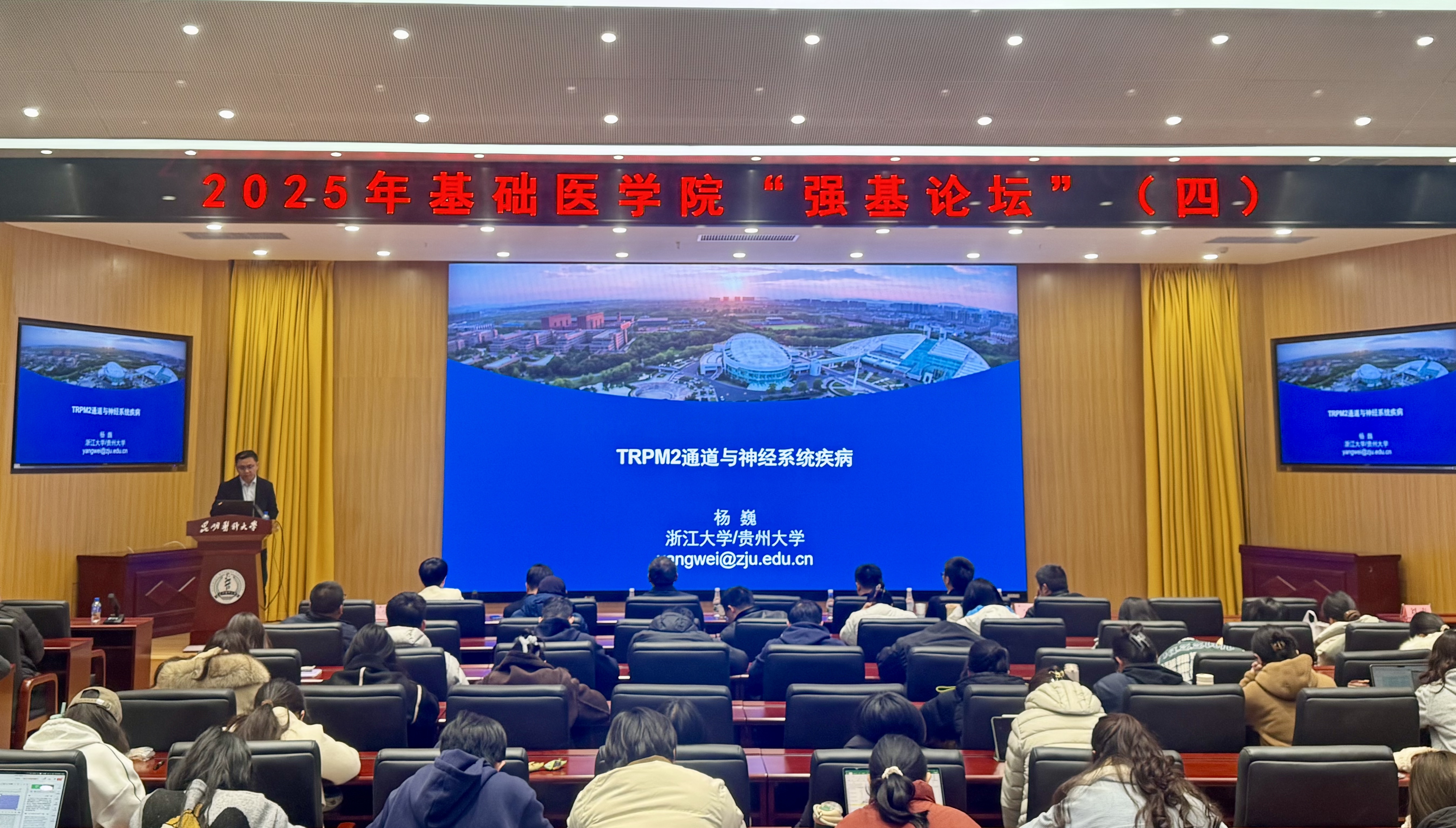 大连医科大学教授杨庆凯以“核酸先天免疫感受与肿瘤”为题,深入剖析了核酸先天免疫感受在肿瘤发生发展中的重要作用,为肿瘤研究提供了新的视角;四川大学华西医院赵旭东研究员围绕“仿生抗衰—打开百岁时代大门”,探讨了通过仿生手段实现抗衰老的可能途径与前景,引发了与会者对未来健康产业的无限遐想;贵州大学医学院杨巍教授在“TRPM2通道与神经系统疾病”的报告中,详细介绍了TRPM2通道在神经系统疾病中的作用机制,为神经系统疾病的防治研究提供了新的思路;中山大学附属第一医院精准医学研究院高宇研究员则聚焦“SARS-CoV-2感染的T细胞免疫应答:从新冠大流行到新冠后遗症的免疫学演变”,揭示了新冠病毒感染过程中T细胞免疫应答的特点及在后遗症形成中的作用,为新冠疫情防控和后遗症治疗提供了重要的理论依据。