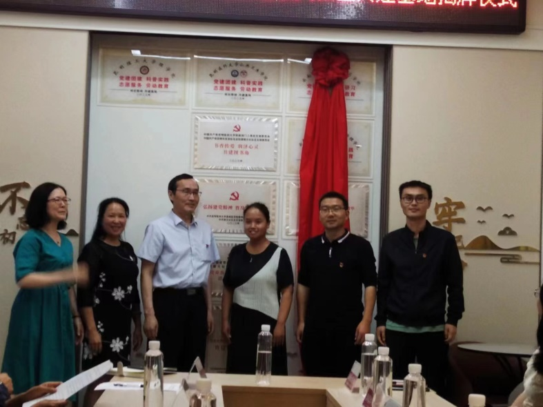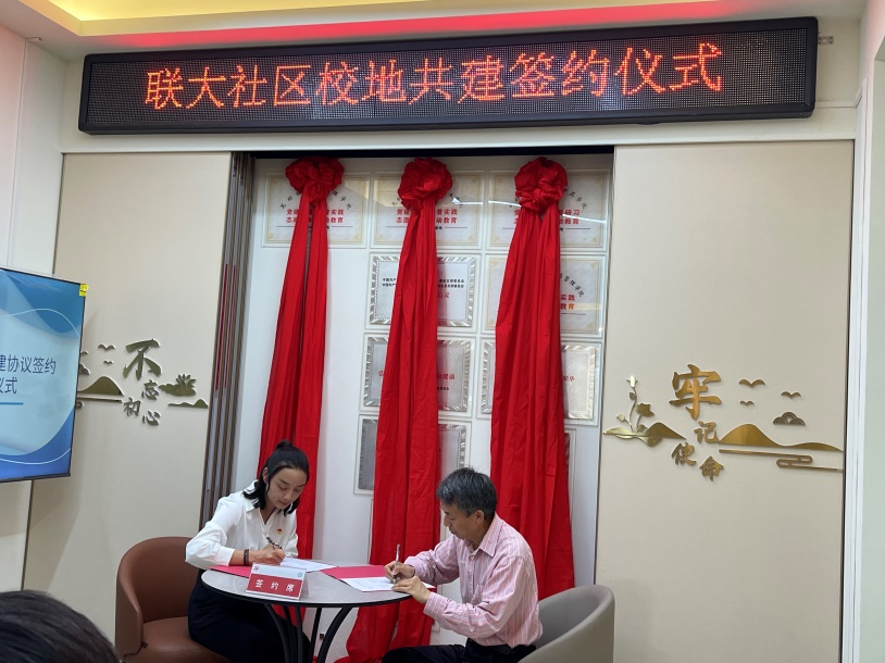 基础医学院党委专职组织员李超同志代表学院党委参加揭牌仪式,教师第十党支部书记钱忠义上台与联大社区党总支书记李倩共同在《支部结对共建协议书》上签字。揭牌仪式简洁庄重,充满仪式感,六条花结红绸自然下垂,在热烈的掌声中,共建双方代表揭开红绸,明亮的共建牌匾出现在大家眼前,象征着双方的合作共建正式开始。
