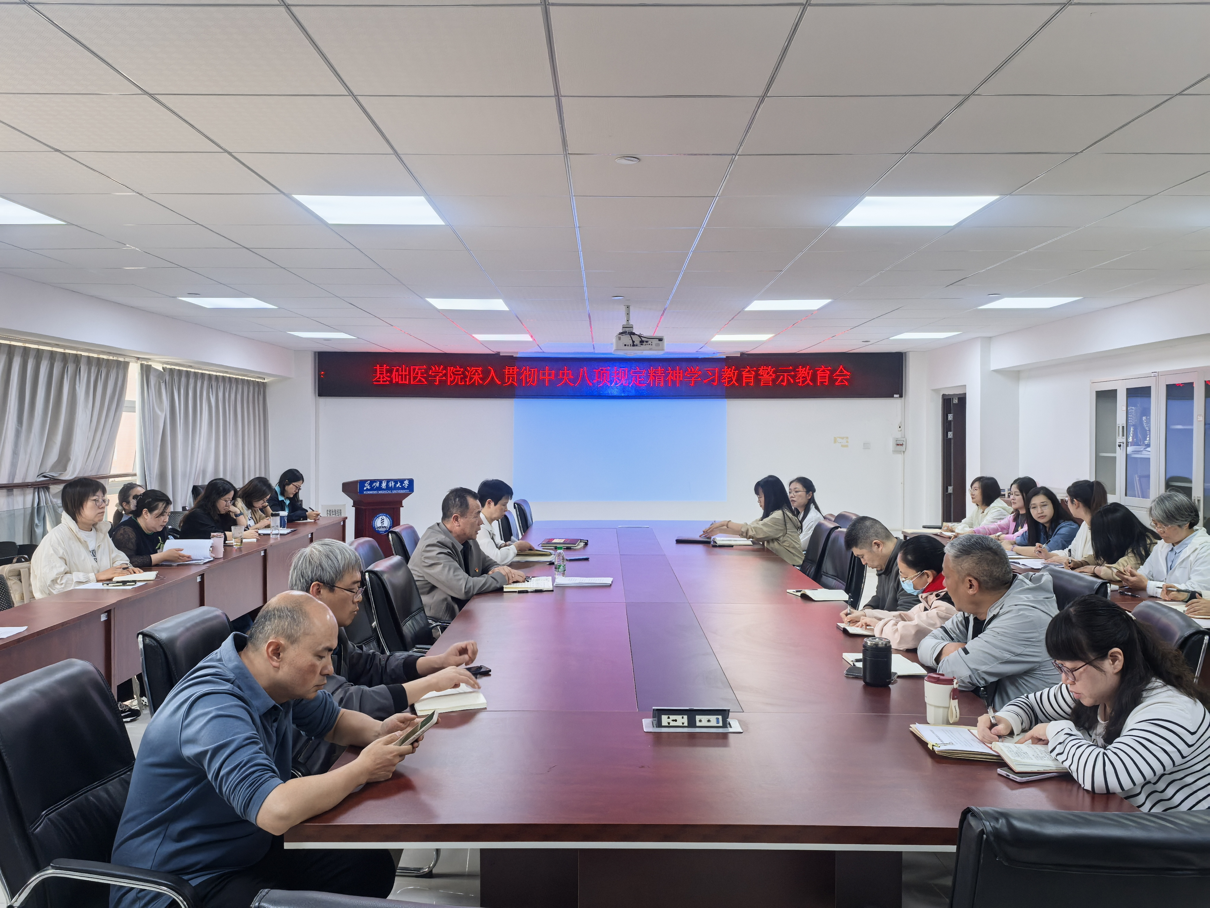 5月15日,伟德国际1949官网基础医学院开展深入贯彻中央八项规定精神学习教育警示教育会在基础医药大楼614会议室召开,深入学习党的十八大以来深入贯彻中央八项规定精神的成效和经验,结合开展深入贯彻中央八项规定精神学习教育,落实上级有关工作部署要求,集中学习纠治党员干部和公职人员违规饮酒问题八个重点方面。