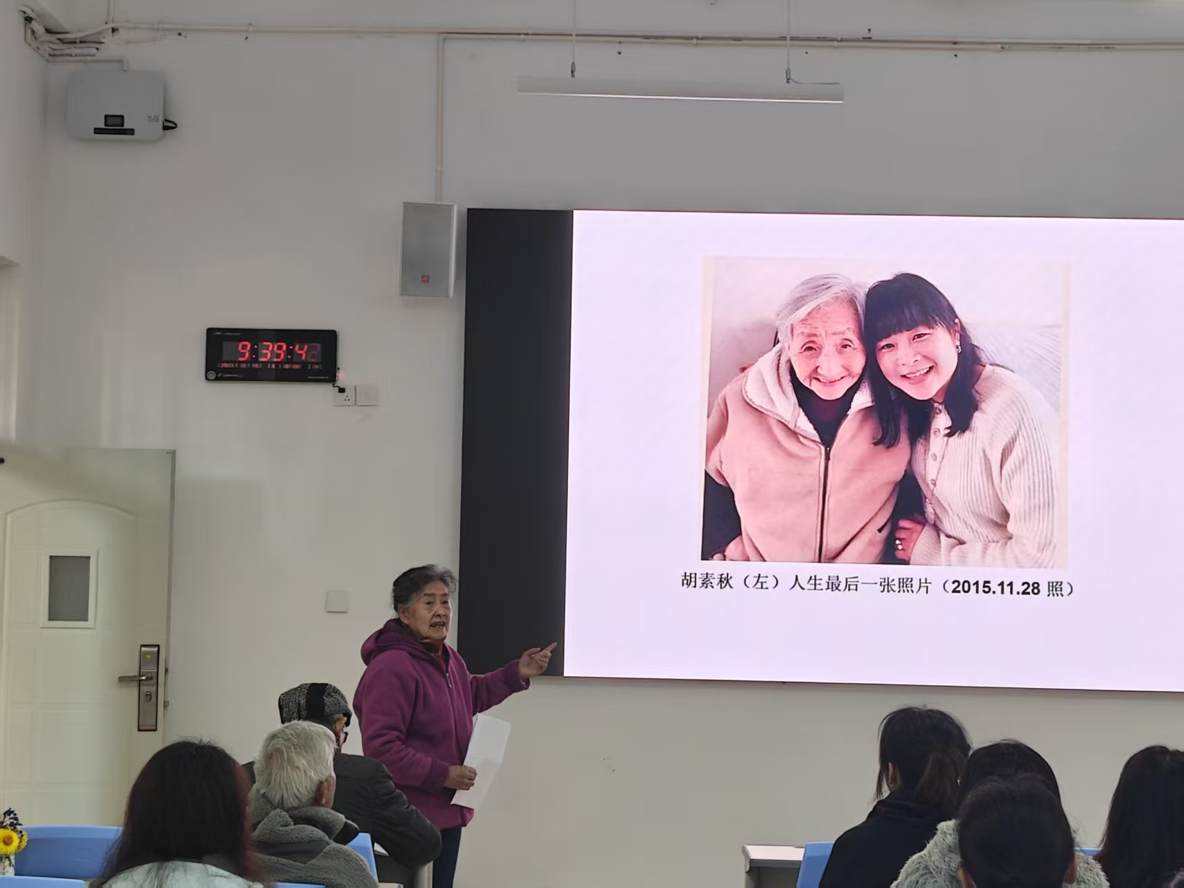 活动伊始,全体党员在胡素秋教授的侄女、原云南省妇幼保健院主任医师胡梅英老师作亲情讲述,学习了胡素秋、李秉权教授的生平事迹。胡梅英老师以家人视角,动情回忆了胡素秋教授日常生活中严于律己、勤俭朴素的点滴,分享了她在医学工作上严谨求实、对学生和后辈关怀备至的诸多细节。一段段平实而珍贵的往事,勾勒出一位不仅是学术大家,更是充满温度的长者与师者的形象,使“献身医学、热爱祖国、忠于人民”的崇高品格从书本的历史记载中走出来,变成可亲、可感、可知、可学的鲜活人物。随后,人体解剖教研室的一线教师李恒希,结合自身执教的经验,深情阐述了“无语良师”在医学教育中不可替代的基石作用:他们不仅帮助学生掌握精密复杂的人体结构,奠定扎实的临床基础,更在无声中传递着奉献、尊重与责任的职业精神内核,让大家都深刻感受到“无语良师”对于培养医学生敬畏生命、感恩奉献的人文精神具有的重大意义。作为胡素秋、李秉权教授遗体捐赠仪式的亲历者与工作人员的曹珍珍老师,以朴实的语言重现了发布会现场庄严肃穆又感人至深的氛围,讲述了两位教授生前立下遗嘱的坚定,以及身后其家属秉承遗志、化悲痛为大爱的无私支持的感人故事。