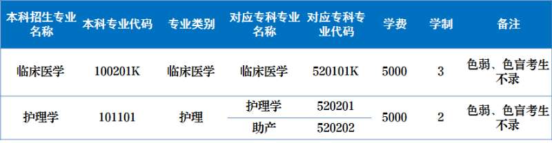 临床医学、护理学专业学费标准为5000元/年/生。