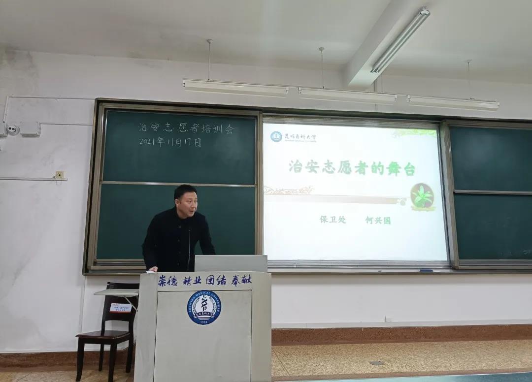 2021年11月17日晚19:00,伟德国际1949官网基础医学院治安志愿者培训大会在呈贡校区教学楼6403成功举办。此次培训邀请了我校保卫处治安科科长何兴国老师作为主讲,基础医学院管琳娜副院长、辅导员武星琪老师以及全体治安志愿者参与此次培训。