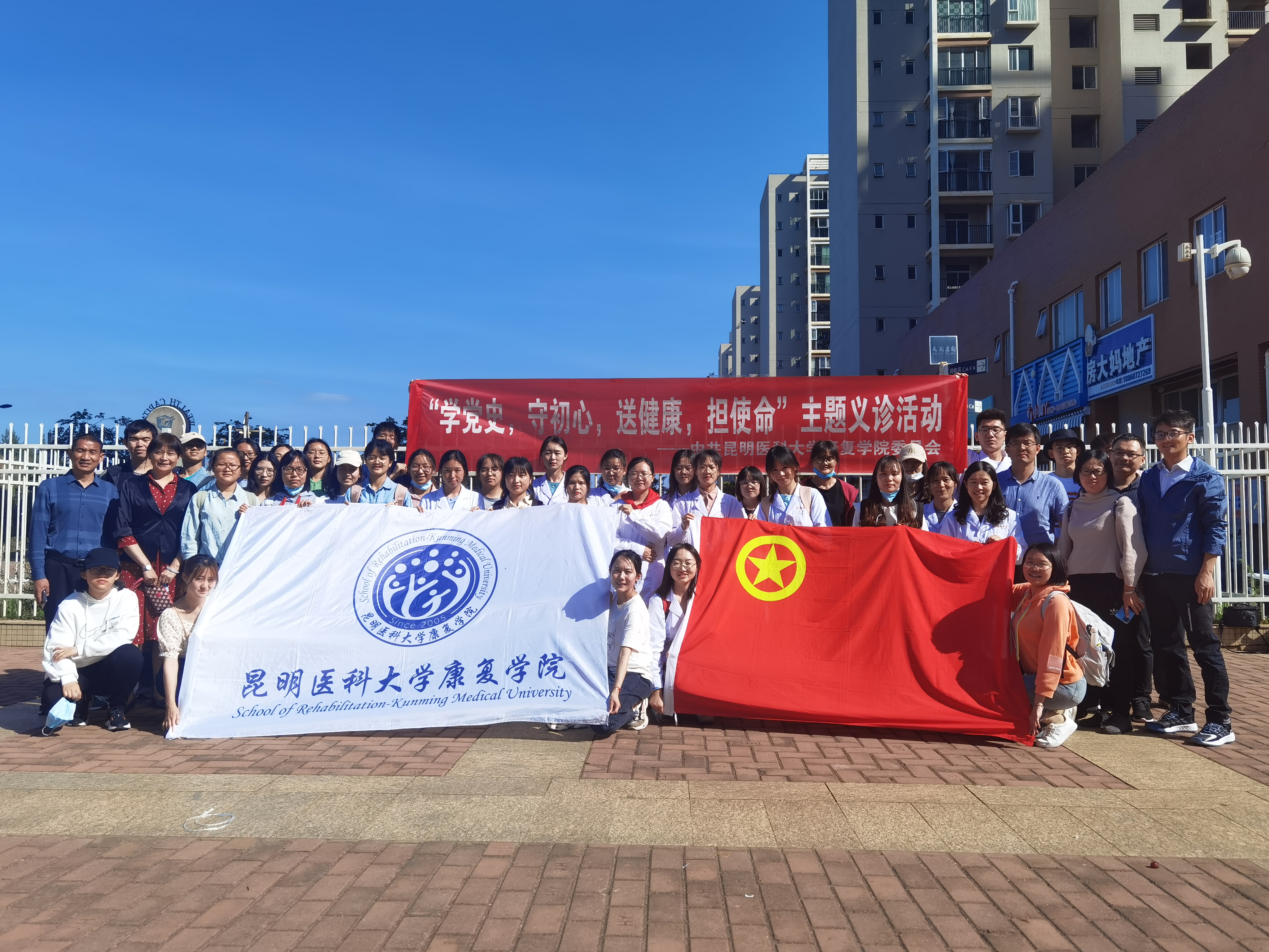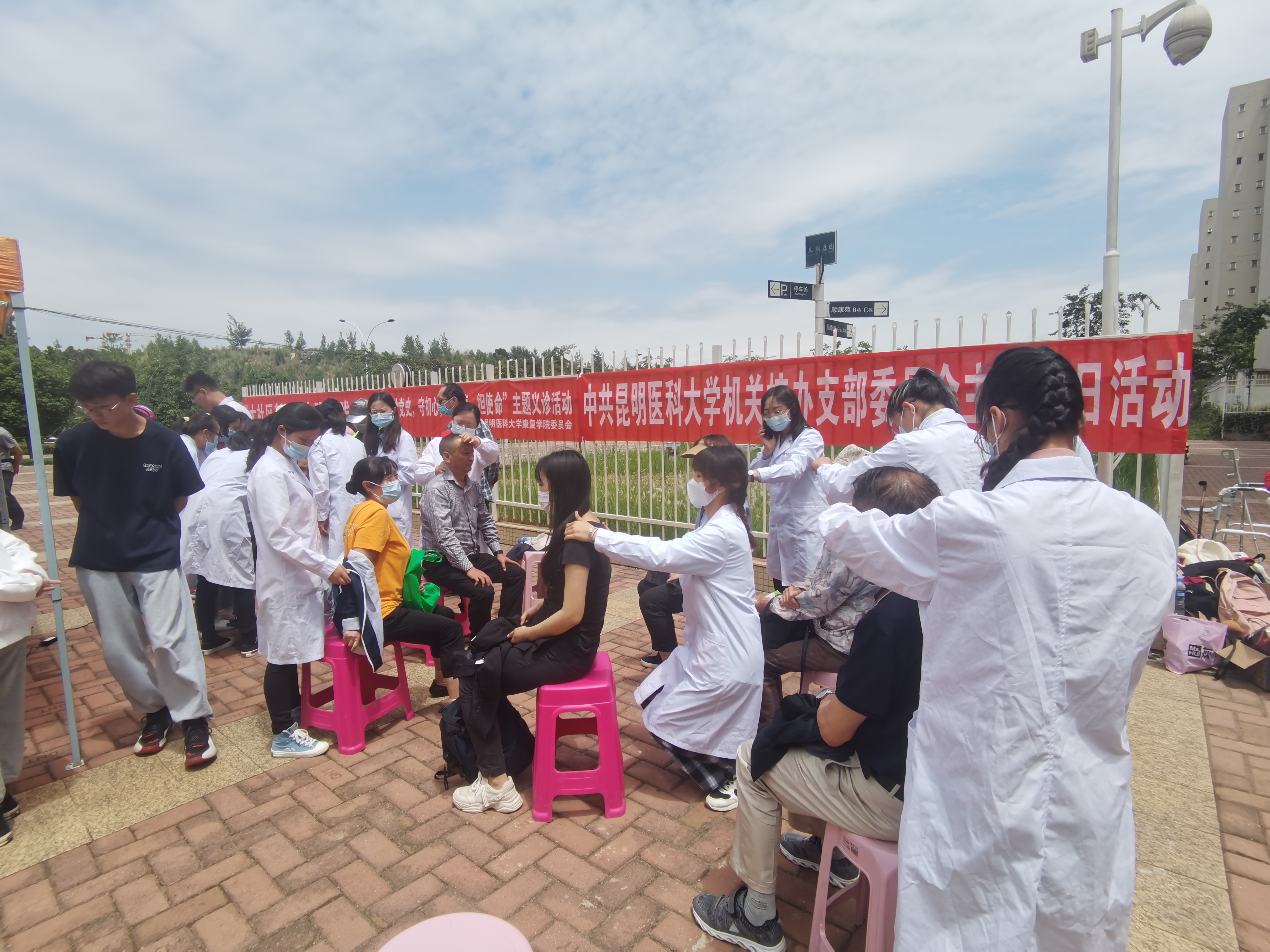 为深入推进党史学习教育,落实“为群众办实事”实践活动,进一步提高群众的健康意识、提升健康素养,让群众就近享受到优质、便捷的康复医疗服务,康复学院携手社区志愿者团队于2021年6月4日下午在昆明市呈贡区天润康园社区小广场开展“学党史,守初心,送健康,担使命”主题科普义诊活动。
