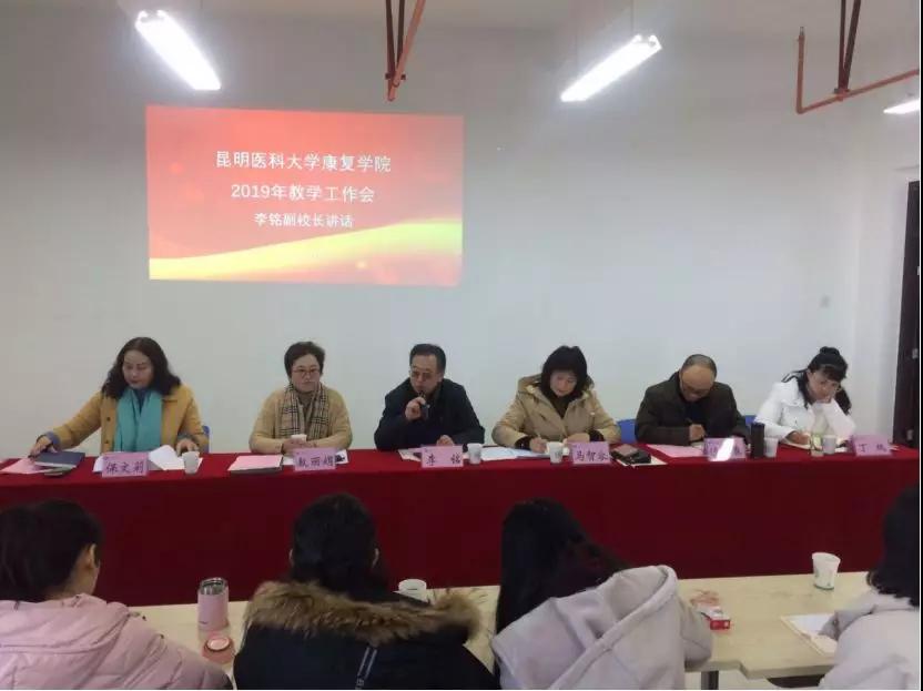 1月4日上午,康复学院在东校区康复学院楼五楼报告厅召开康复学院2019年春季学期教学工作会。学校副校长李铭,康复学院党政负责人、教学办主任、全体教师以及学校体育部、第一临床医学院康复科及耳鼻喉科教研室、第二临床医学院康复科及耳鼻喉科教研室、云南省残疾人康复中心及昆明长和天城康复医院、昆明市中医院、昆明市第二人民医院、昆明市儿童医院等实践教学基地分管教学负责人、教学秘书、课程负责人、主讲老师等参加会议。