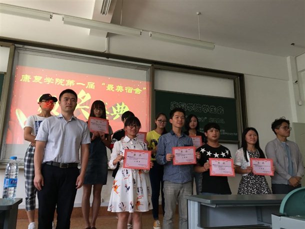 2017年6月1日下午17:00,在学院团委的领导,以及学办的指导下,由康复学院学生会承办、学生会生活部主持的康复学院第一届”最美宿舍”颁奖盛典活动在教学楼1206圆满进行。出席本次颁奖盛典的重要嘉宾有学院团委书记李训老师、学生会主席白飞和副主席周丽洁,各获奖宿舍代表人员,学生会生活部和其他部门代表人员。