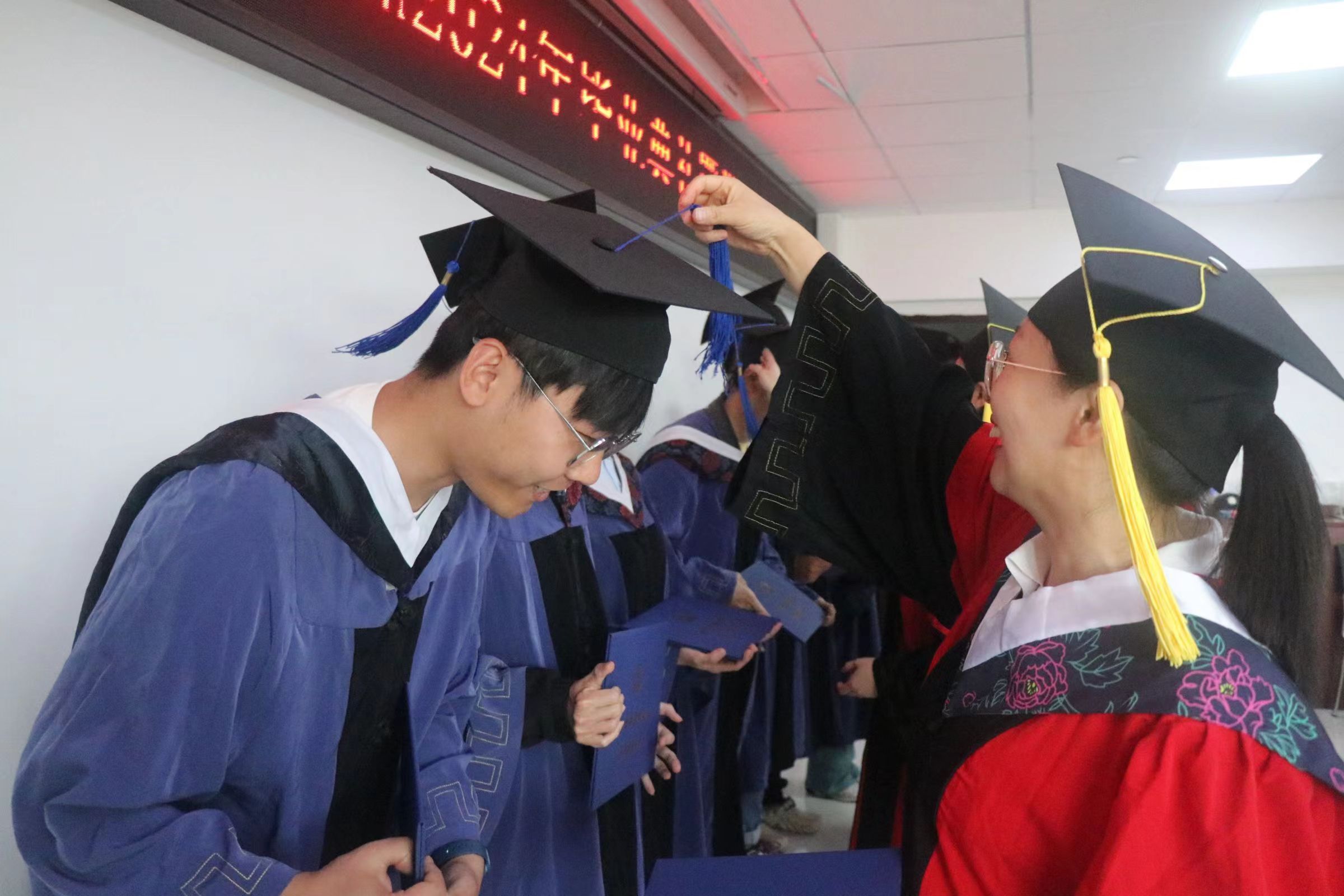 毕业典礼在庄严的国歌奏唱声中拉开帷幕,学院党委委员、副院长杨新旺分别宣读了2024届研究生授学位名单以及2024年省级、校级优秀毕业生表彰决定。随后,领导和老师为2024届毕业生颁发学位证书,扶苏拨穗给予祝贺。