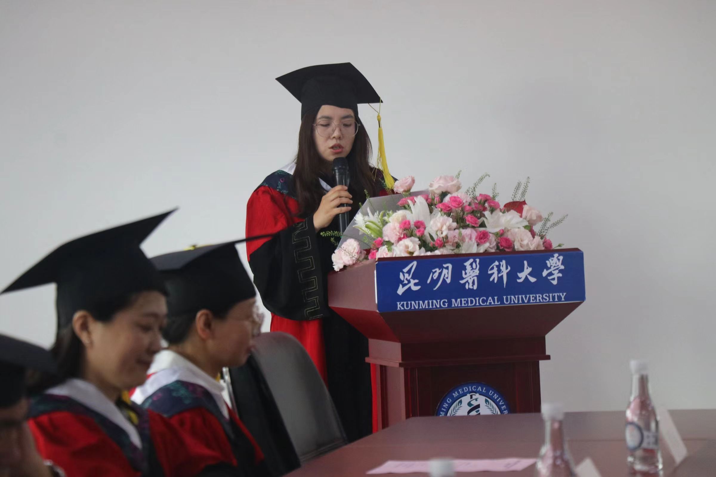 典礼上,毕业生代表李依林发言,回顾过往,在昆医的学习生活经历是她成长道路上最为宝贵的财富,她将带着这段经历继续前行在医学研究的道路上,追求卓越、勇攀高峰,以更加坚定的信念和更加饱满的热情,为实现自己的医学梦想而不懈努力。