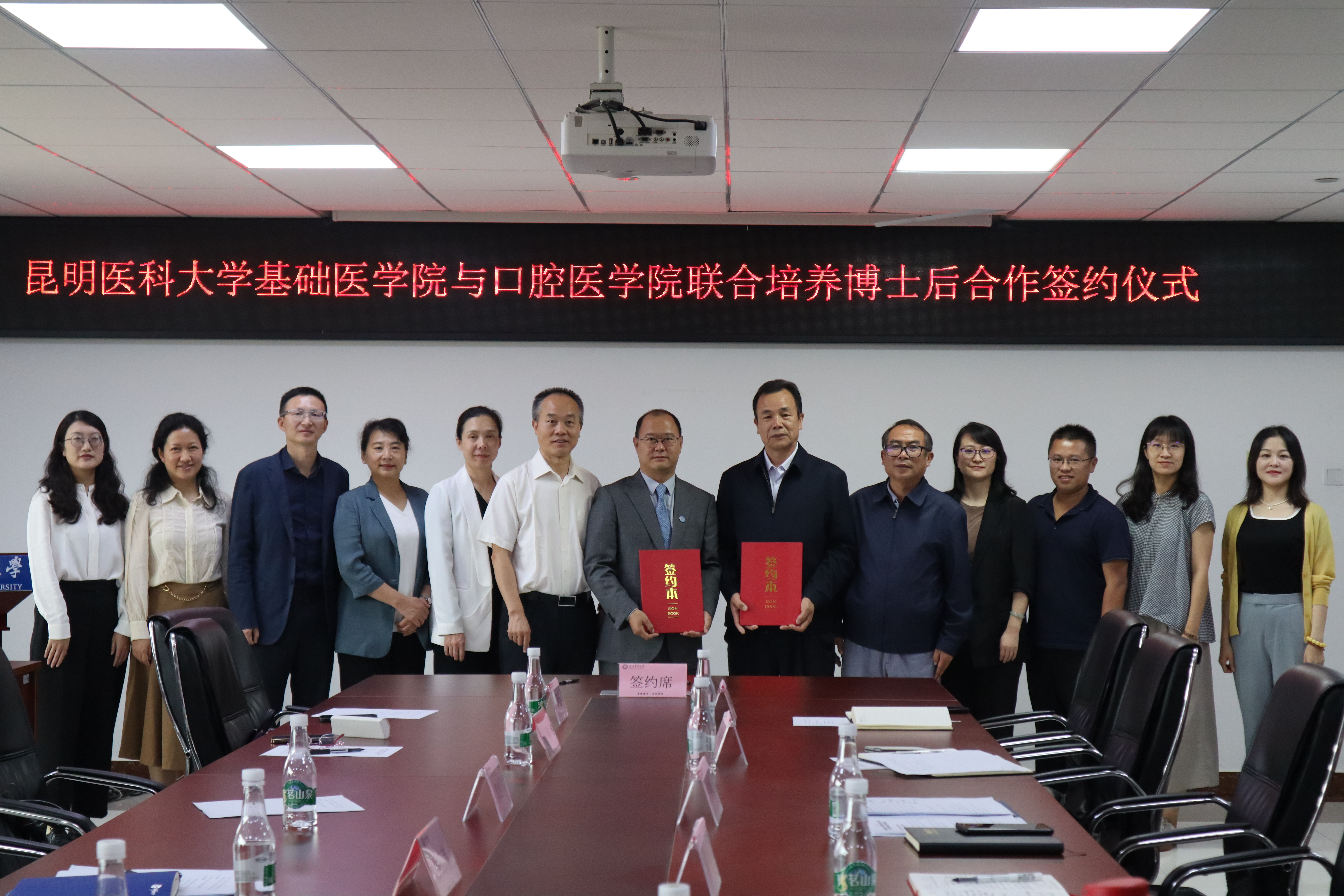 7月2日,伟德国际1949官网基础医学院与口腔医学院联合培养博士后合作签约仪式在基础医学楼614会议室举行,基础医学院党政领导、口腔医学院党政领导、云南省口腔医学重点实验室负责人和两个学院办公室相关负责人出席签约仪式。