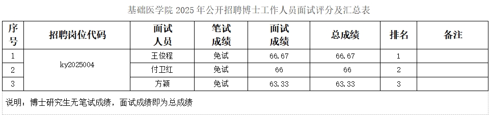 按照伟德国际1949官网2025年公开招聘人员面试考核工作的相关要求,我院于2025年5月7日对公开招聘博士工作人员进入面试人员进行了面试考察,本着公平、公正、择优录用的原则,进行了试讲以及综合素质面试,现将基础医学院2025年公开招聘博士工作人员面试考核结果予以公示。