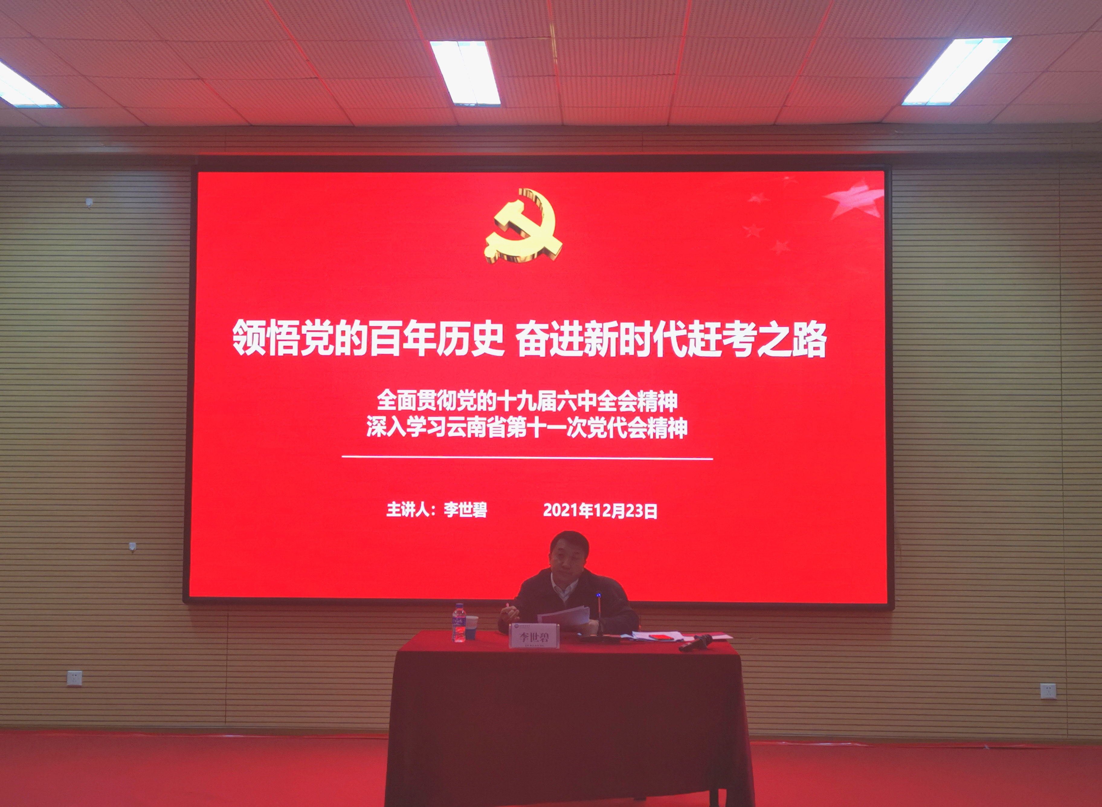 12月22日上午,学校党委副书记李世碧在人文与管理学院报告厅以《领悟百年党的历史 奋进新时代赶考之路》为题宣讲党的十九届六中全会精神和省第十一次党代会精神。