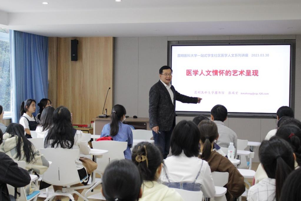 为深化学校医学生医学人文情怀,2023年3月30日下午,伟德国际1949官网“一站式”学生社区文化中心、伟德国际1949官网润心文化育人辅导员工作室邀请了伟德国际1949官网图书馆馆长,教育部高等学校教学指导委员会委员,国家卫健委医学伦理专家委员会委员张瑞宏教授为同学们带来《医学人文情怀的艺术呈现》讲座。