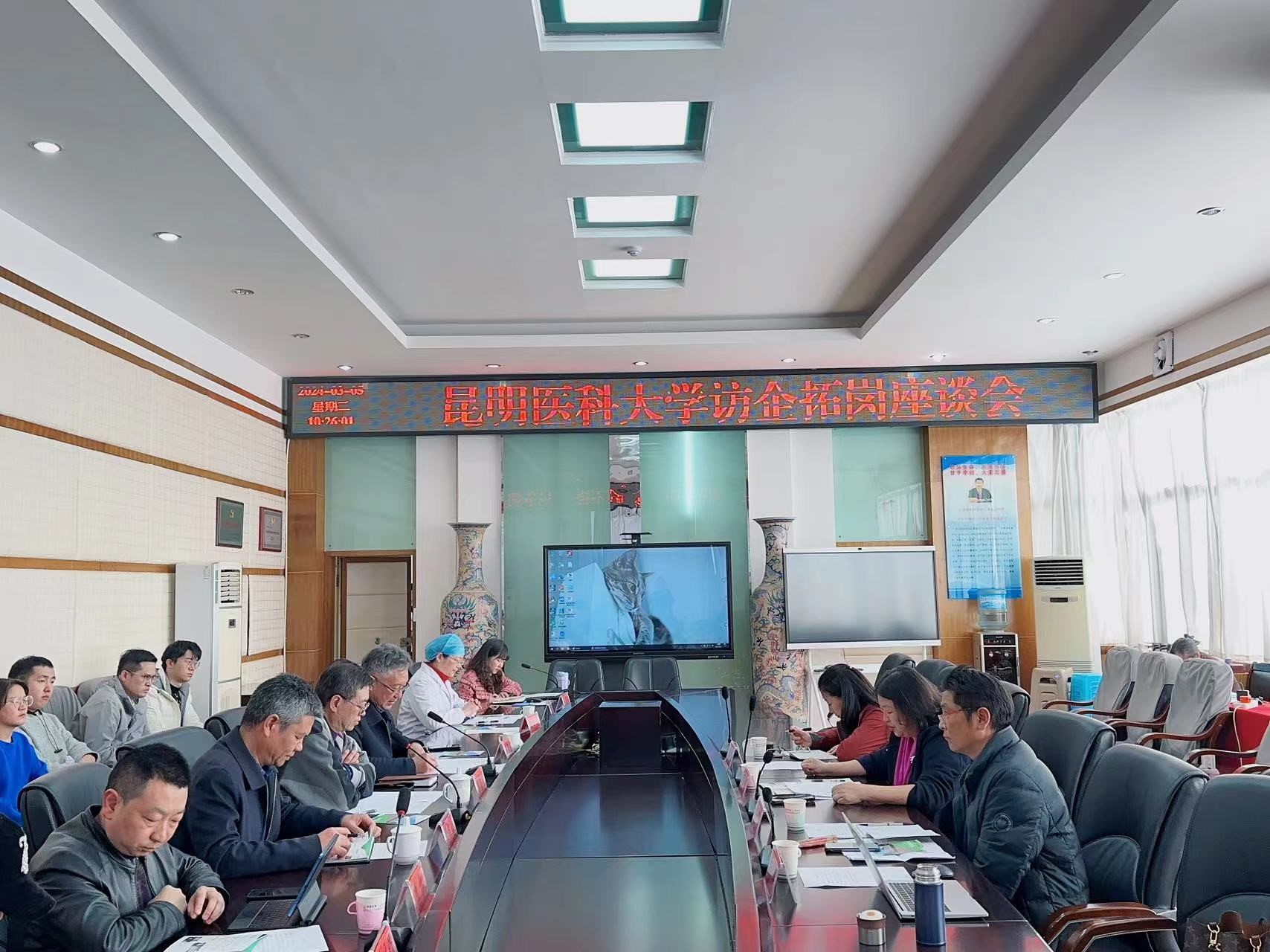 昭通市第一人民医院郭昌贵院长就医院的发展历程、科室设置、学科建设、招聘需求等方面进行详细介绍,指出目前医院非常需要劳动与社会保障、市场营销、社会工作专业及应用心理专业毕业生,希望能进一步畅通招聘条件和上升渠道,也希望学校多推荐和培养优秀专业人才,促进双方深度合作。医院人事处负责人对医院人员配备及2024年人才招聘需求情况作了介绍。