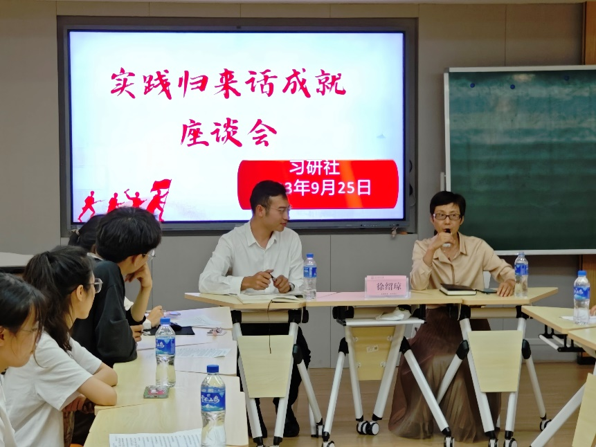 本次座谈主题为“实践归来话成就”。习研社何丹娜、鲁成斌、代兴琼等10名代表根据自身暑期社会实践经历,从农村基础建设、基层医疗现状、重疾儿童入院适应、农村留守老人医疗服务需求等多方面分享了实践感悟。